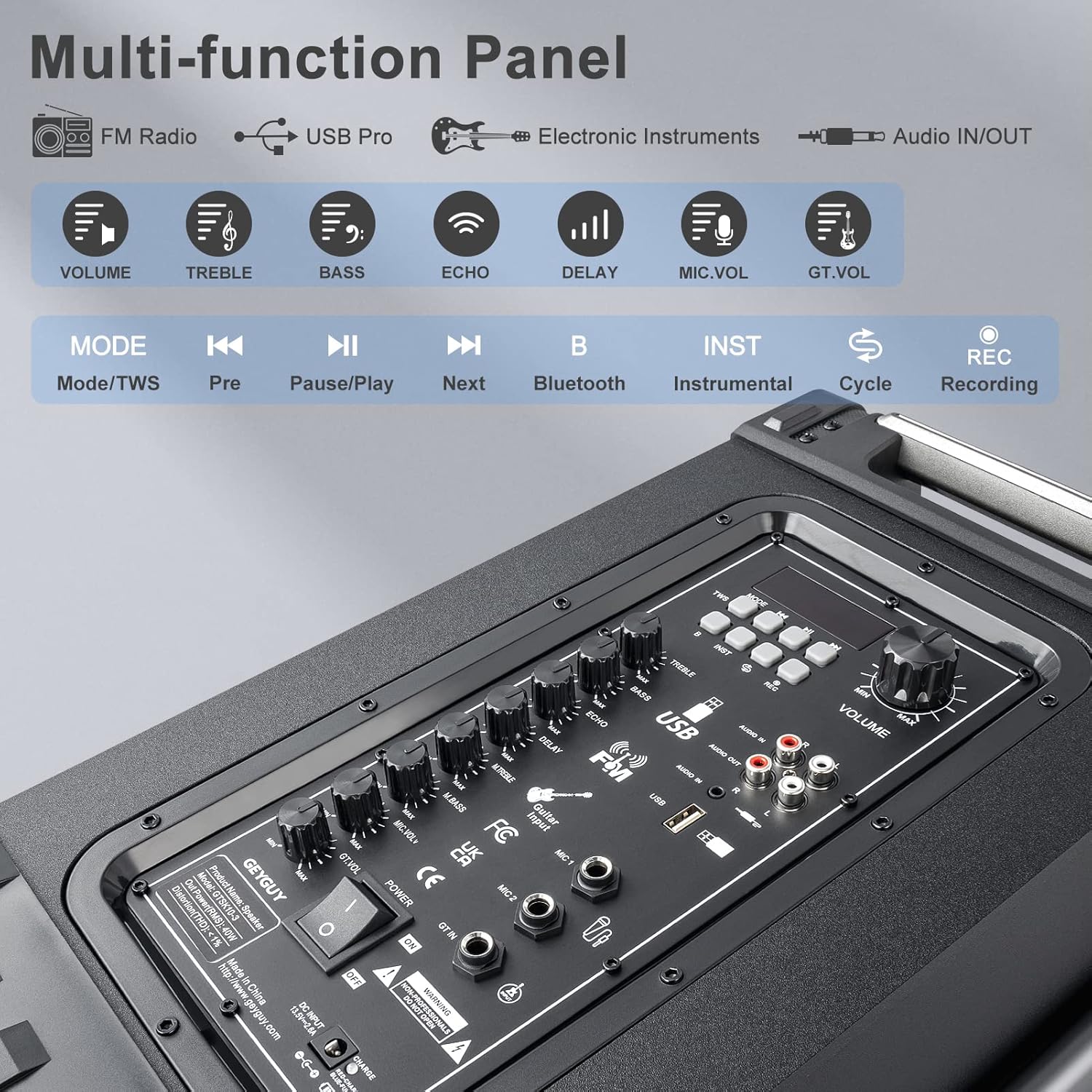 - π¦ Package Includes: 1 Γ GTSK10-3 Portable Speaker System 2 Γ Wireless Microphones 1 Γ Remote 1 Γ RCA Cable 1 Γ AUX 3.5mm Cable 1 Γ Power Adapter 24/7 Support Team β Buy with Confidence