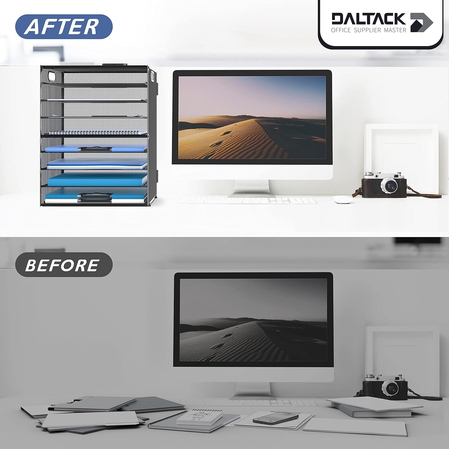 DALTACK 9-Tier Paper Letter Tray Desk Organizer with Handles, Mesh File Holder Organization, Paper Sorter Desk Organizer for Office Home School, Black