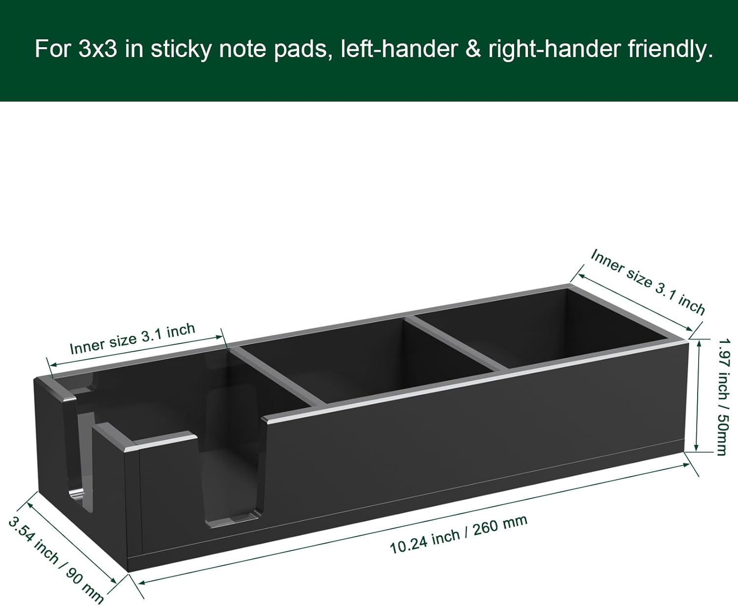 Acrylic Sticky Note Holder, Self-Stick Note Pad Holder W/O Pads - Note Dispenser Memo Pad Holder Desk Organizer for School Office Home (3''x3'' 3IN1 Black)