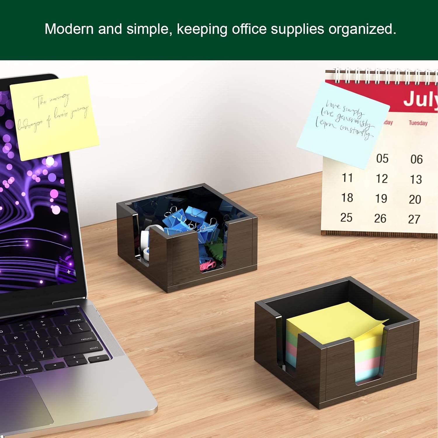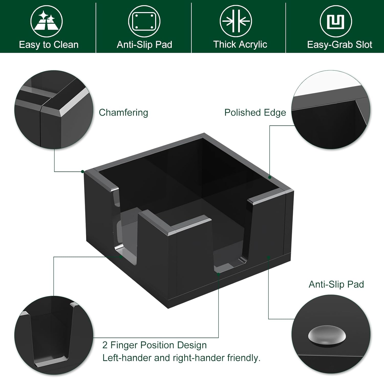- Non-skid Silicone Pads - beneath each corner of the acrylic sticky note dispenser, make it stay in place with no slide or scratch on your desk. The solid acrylic memo pad holder is a great home office set up accessories decor, a good-to-have decent desk organizer.