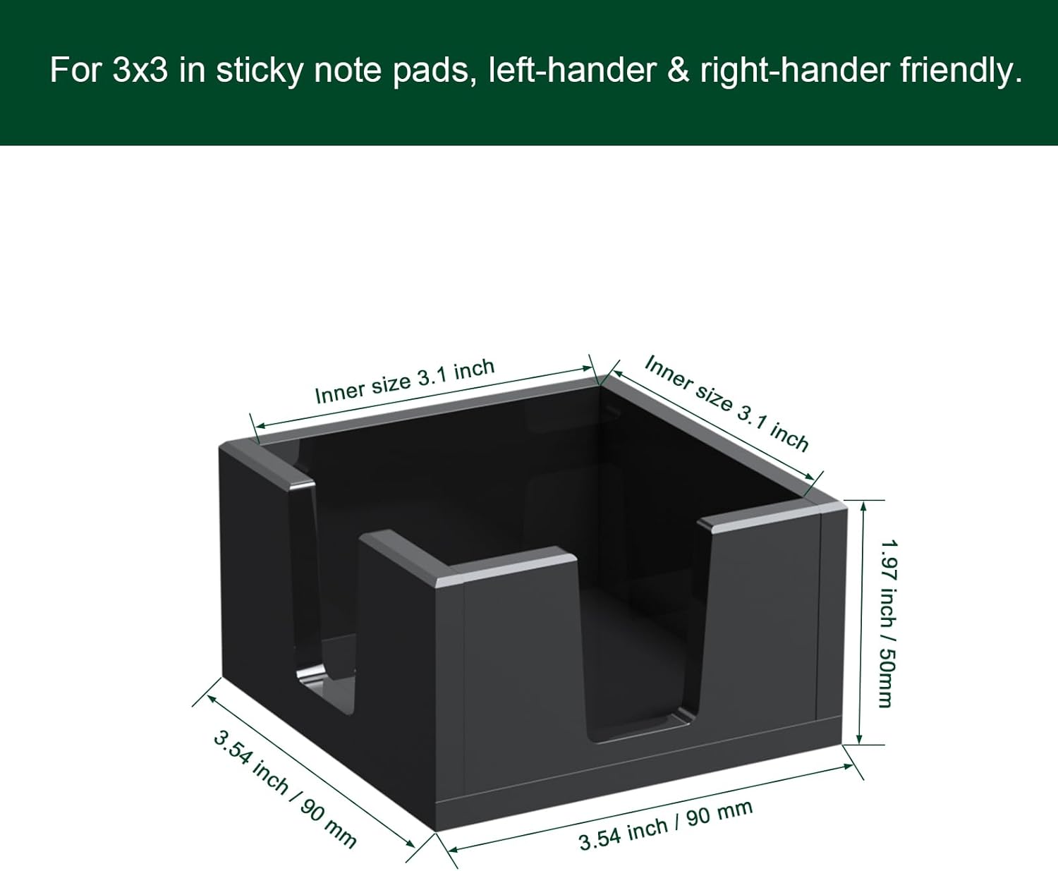 - Self-Stick Note Pad Holder: with square-shaped design and inside dimensions of L*W*H, it's wide enough to hold all kinds of 3-by-3-inch pad of paper, such as post notes, colorful sticky notes, cube paper or pads