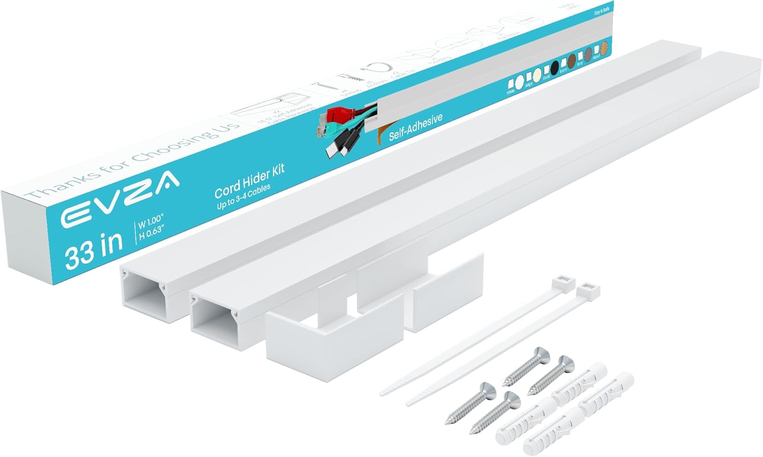 - Hide TV Cords for Wall Mount TV : Evza cord hider that will make your house tidy and safe. Install the cable hider and hide the electrical wires for the TV on the wall right away with all the necessary parts included in the wall cord concealer kit. Get Evza cable management kit offers an affordable and functional solution for cable management at home or in office.