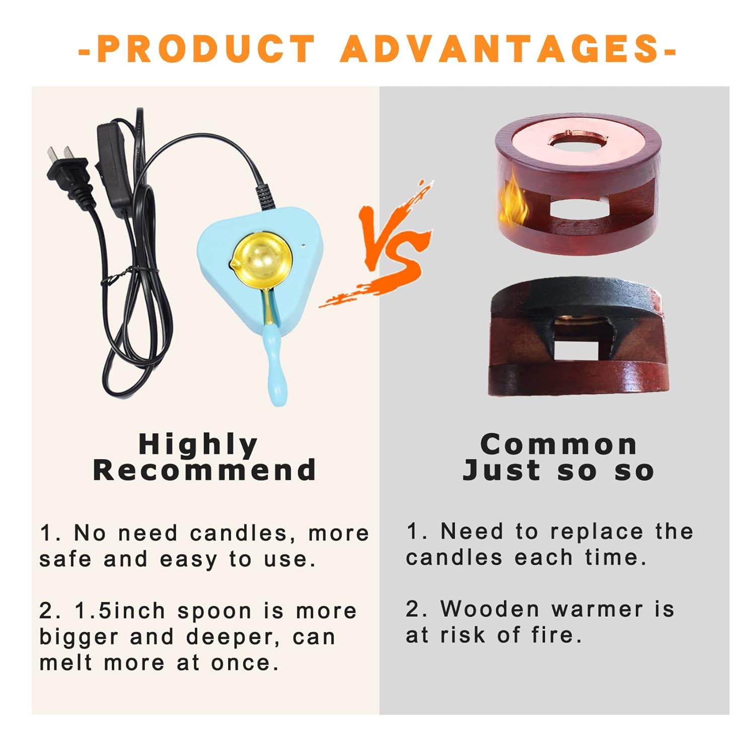 - 【Upgraded Electric Wax Seal Warmer】-- Compared with normal wax seal warmers, the electric wax seal warmer is electrically heated without candles, it`s more convenient and safer to use. More bigger and deeper spoon can melt more at once, and easy to clean.
