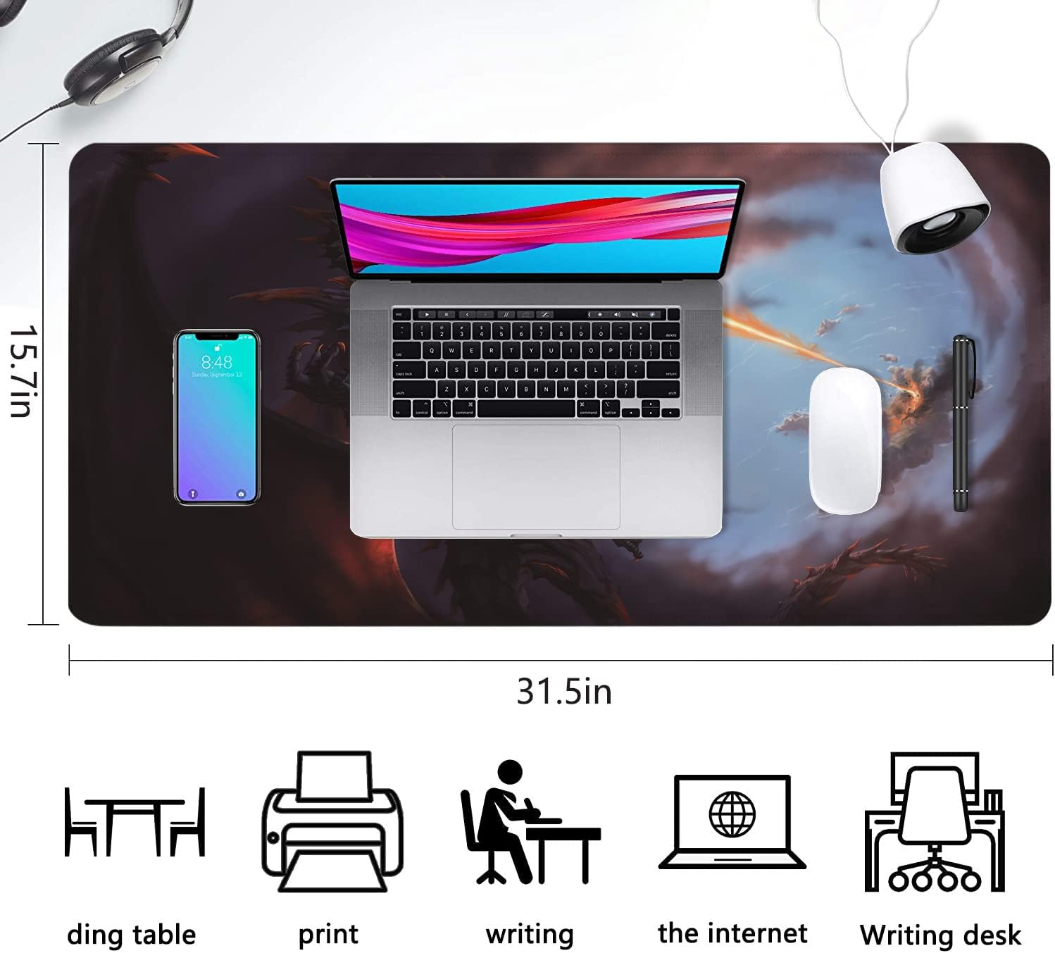 Extended Large Gaming Mouse Pad Cool Dragon Flame XXL Size Keyboard Mouse Mat Desk Pad with Non Slip Rubber Base Stitched Edges Office Decor for Women Girls Men,35.4 x 15.7inch