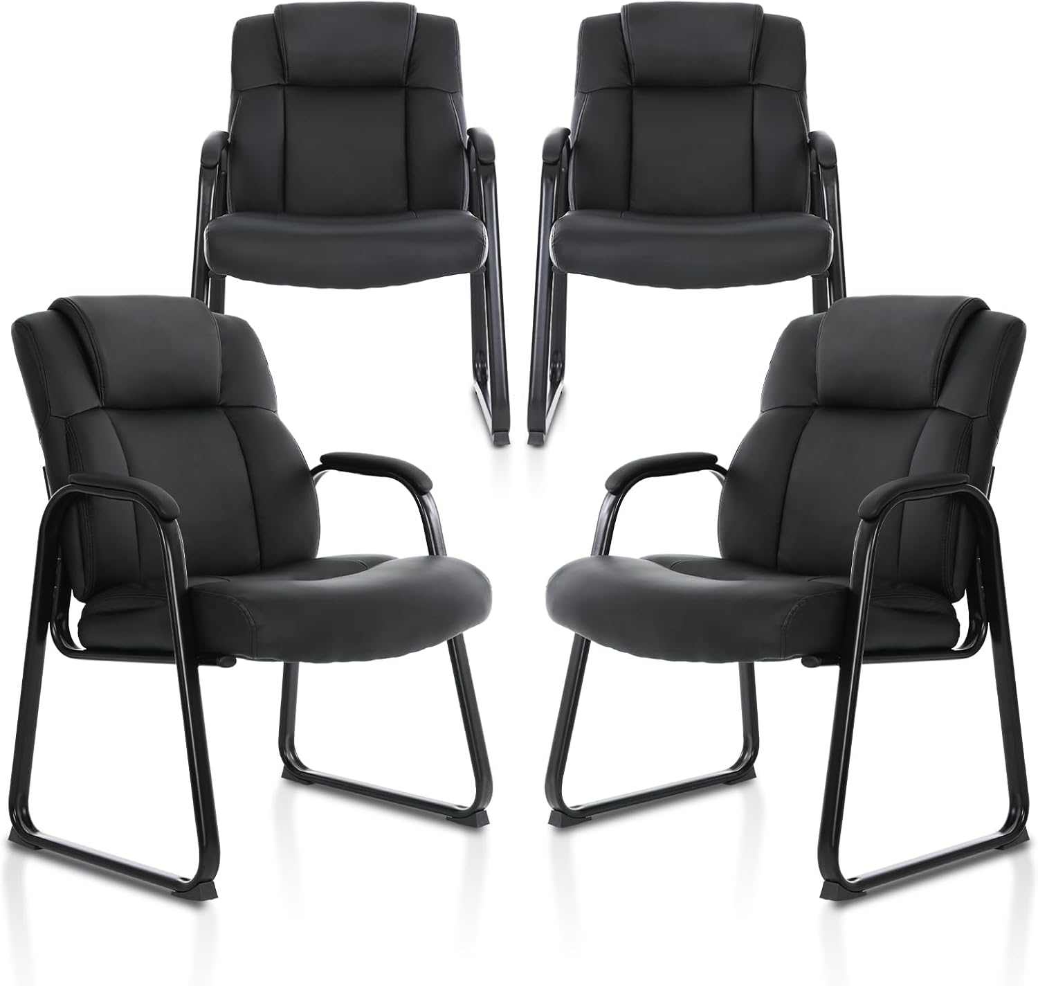 CLATINA Big & Tall 500 lb. Guest Chair, Leather Reception Chairs with Sled Base and Padded Arm Rest for Waiting Room Office Home and Meeting Conference-Black (4 Pack)