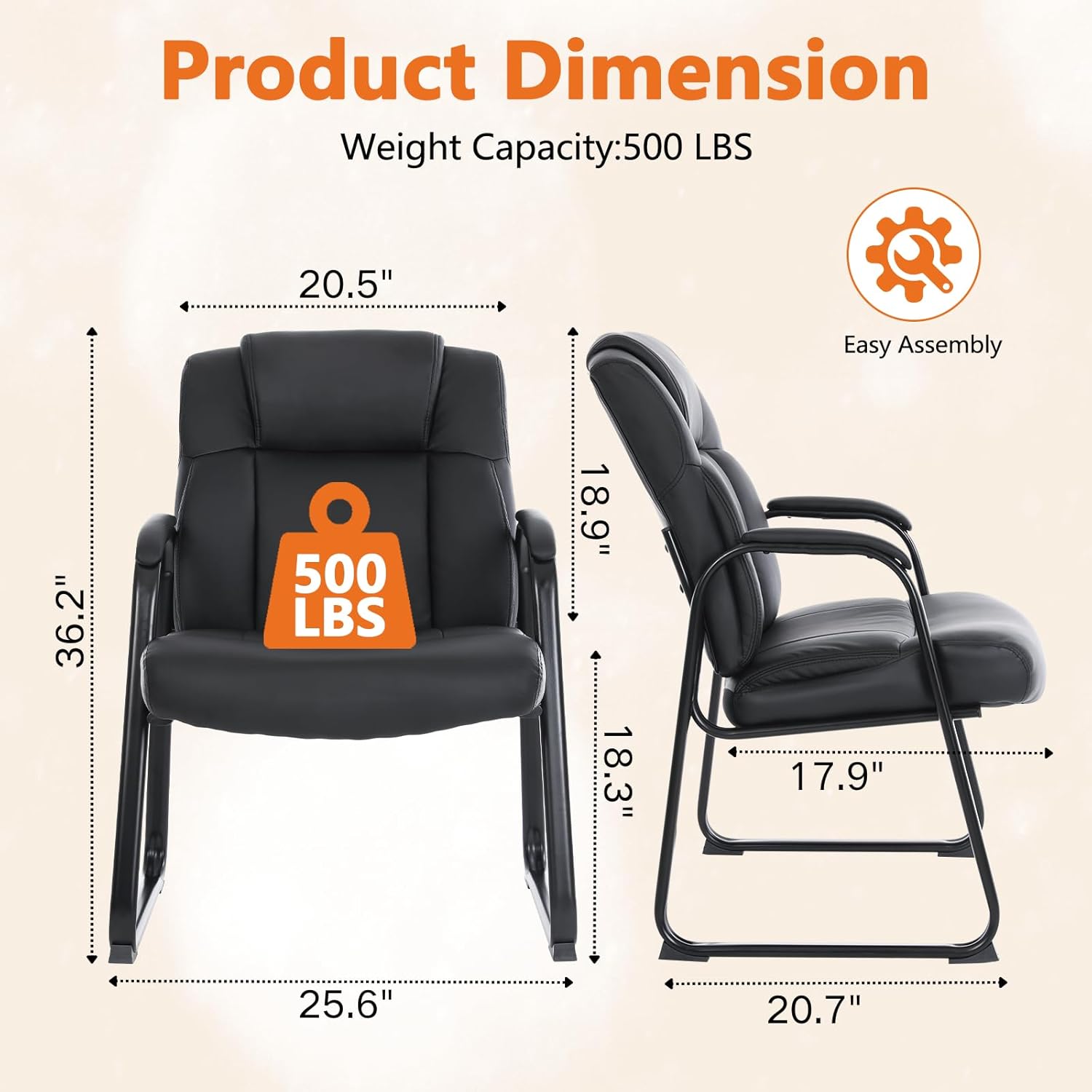 CLATINA Big & Tall 500 lb. Guest Chair, Leather Reception Chairs with Sled Base and Padded Arm Rest for Waiting Room Office Home and Meeting Conference-Black