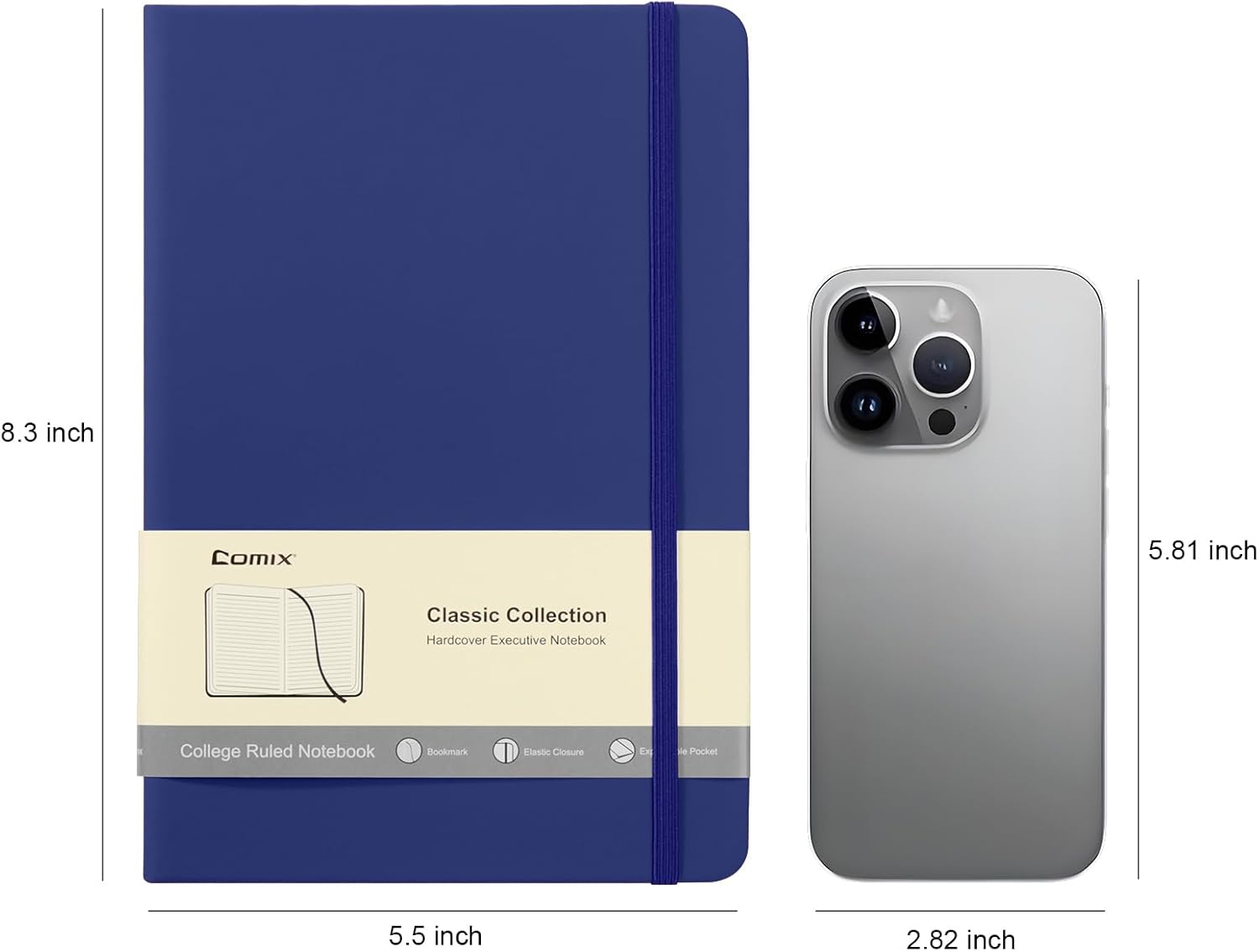 Comix 6 Pack Lined Journal Notebooks for Work, 240 Pages, 5.5"x8.3", Navy Blue, Hardcover, A5 Medium College Ruled, Journaling Notebooks for Notes-taking, Fits for Office School Home