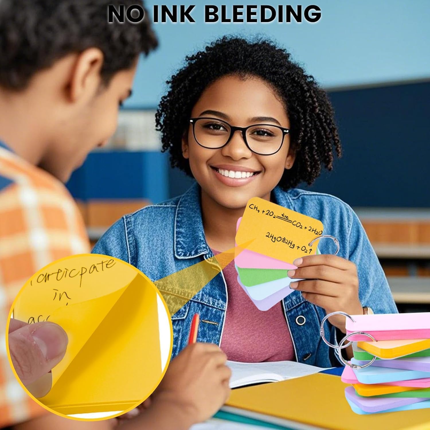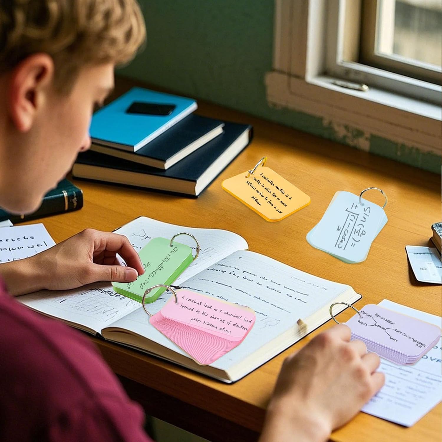 - High-Quality Study Supplies – Made from thick, double-sided writable paper, these index cards prevent ink bleed-through. The reusable metal binder rings keep notes organized, making them ideal for exam preparation and long-term study