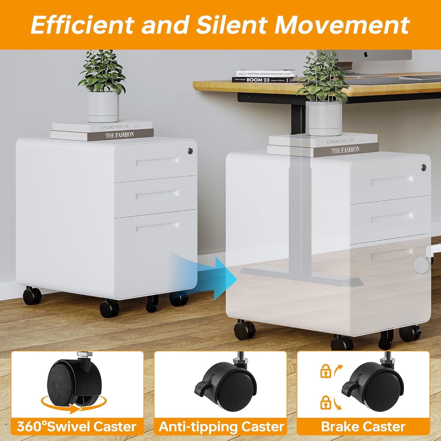 - ✅➤【LOCK AND ANTI-TILT DESIGN FOR HIGHT SECURITY 】: The sturdy file cabinet comes with 2 keys to lock up the top and bottom drawers. And the small wheel in the front that keeps the cabinet from tipping. The rear casters can be moved around and locked. Easy to move around and enough space for your files and keep important Files. Home files fit well in this stable and movable 3-drawer file.