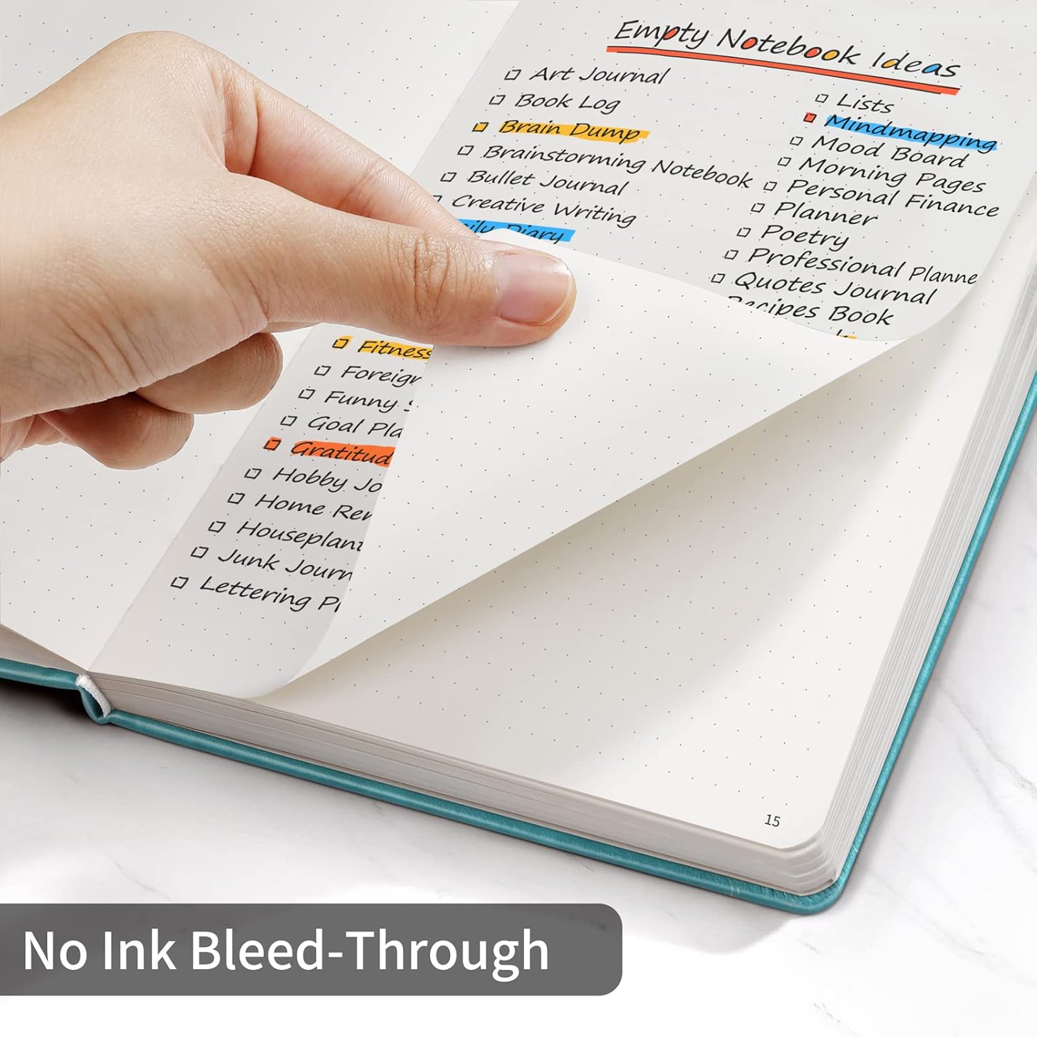 Annecy Numbered Bullet Dotted Journal Notebook, Medium 5.5x 8.25, 160 Pages 100GSM Writing Paper, A5 Turquoise Faux Leather Cover with Pen Loop