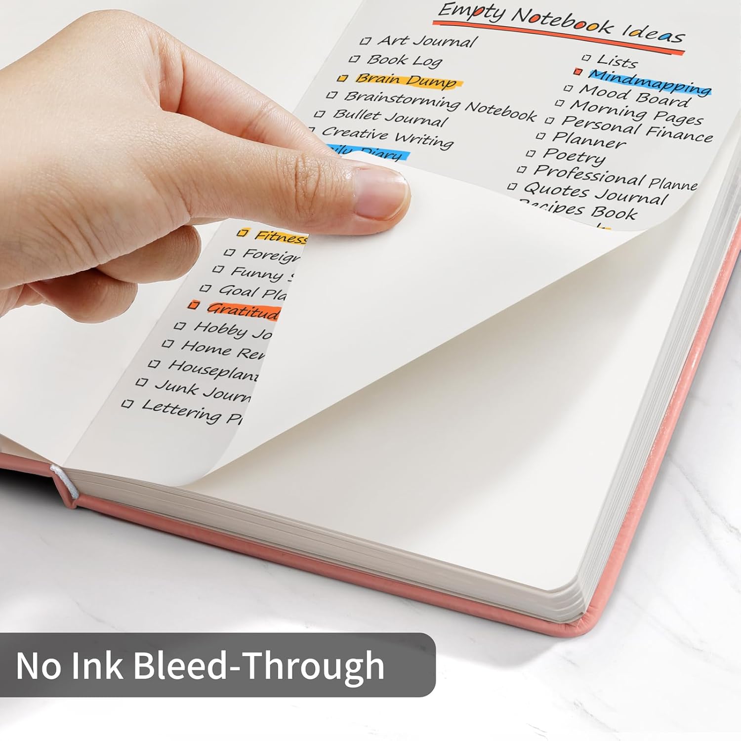- Multifunctional Cover: The hard cover is made of vegan leather, and designed with a pen loop, an elastic band, two ribbon page markers, an expandable inner pocket.