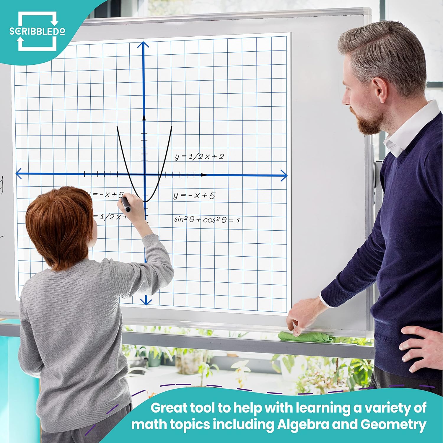 Scribbledo Jumbo Magnetic Coordinate Plane 27" x 27" White Board Dry Erase Graph Grid Board XY Coordinate Plane Grid Whiteboard Math Teacher Supplies