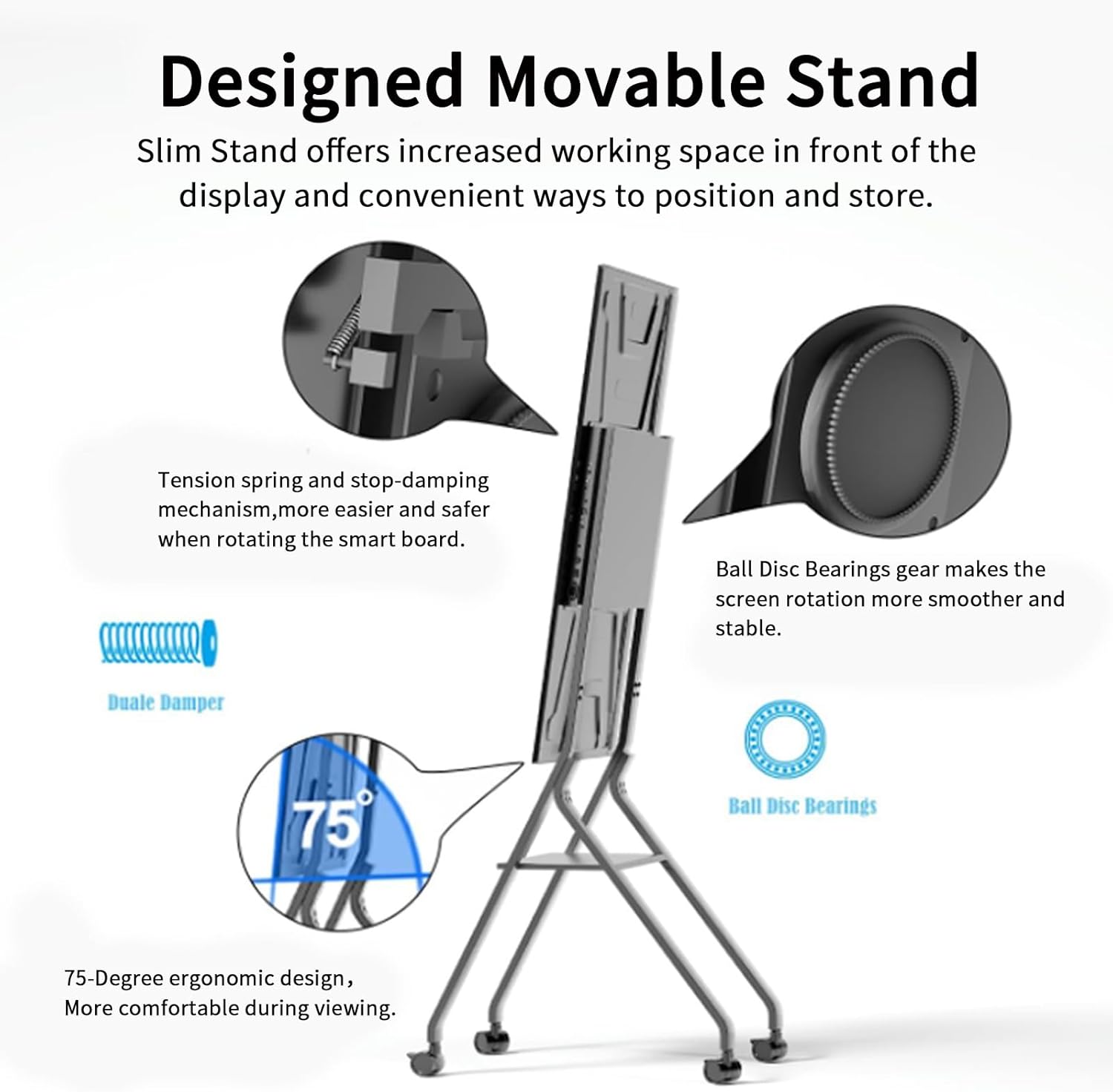 - 【ROTATABLE SMART BOARD】Smartboard can be rotated to meet the needs of various occasions. Whether it is in meeting, sports, entertainment or live broadcast, the rotatable screen can meet your needs. The built-in gravity sensor of digital whiteboard automatically adapts to landscape/portrait flip display orientation to make the viewing angle of the portrait app wider and more friendly.