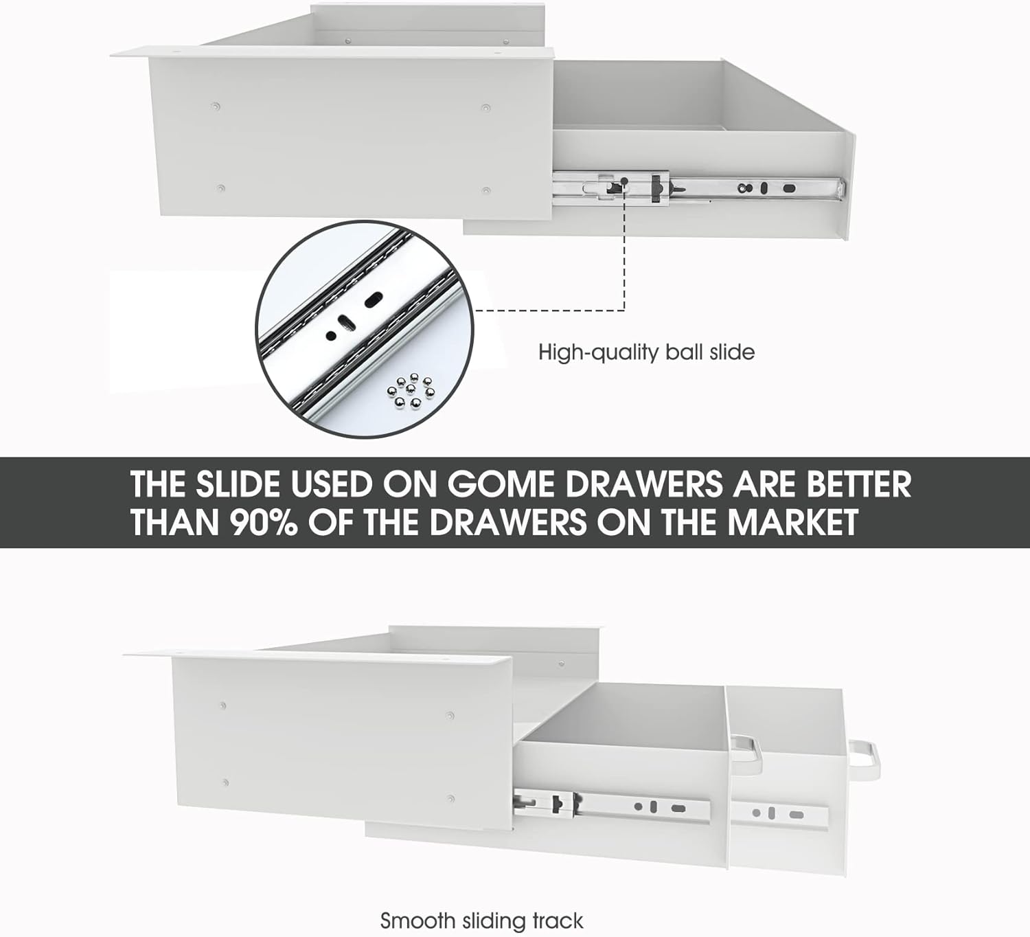 - 【Pulling is smoother】-- High-quality ball sliding track make the drawer pull smoothly. With three-section slide, the drawer can be completely pulled out,making it more convenient to take and place office supplies.