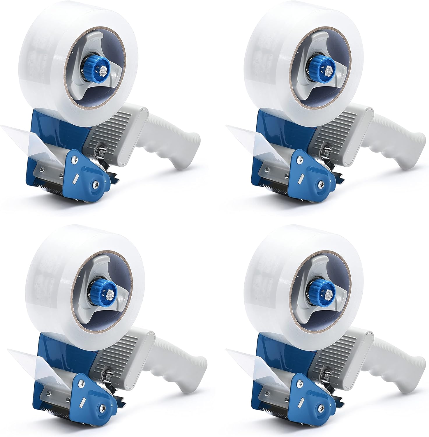 Packing Tape Dispenser Gun (4 Packs) Pacific Mailer 2 Inch Tape Gun Dispenser with 2 Inch Carton Packing Tape, Lightweight Industrial Side Loading Tape Dispenser - Blue