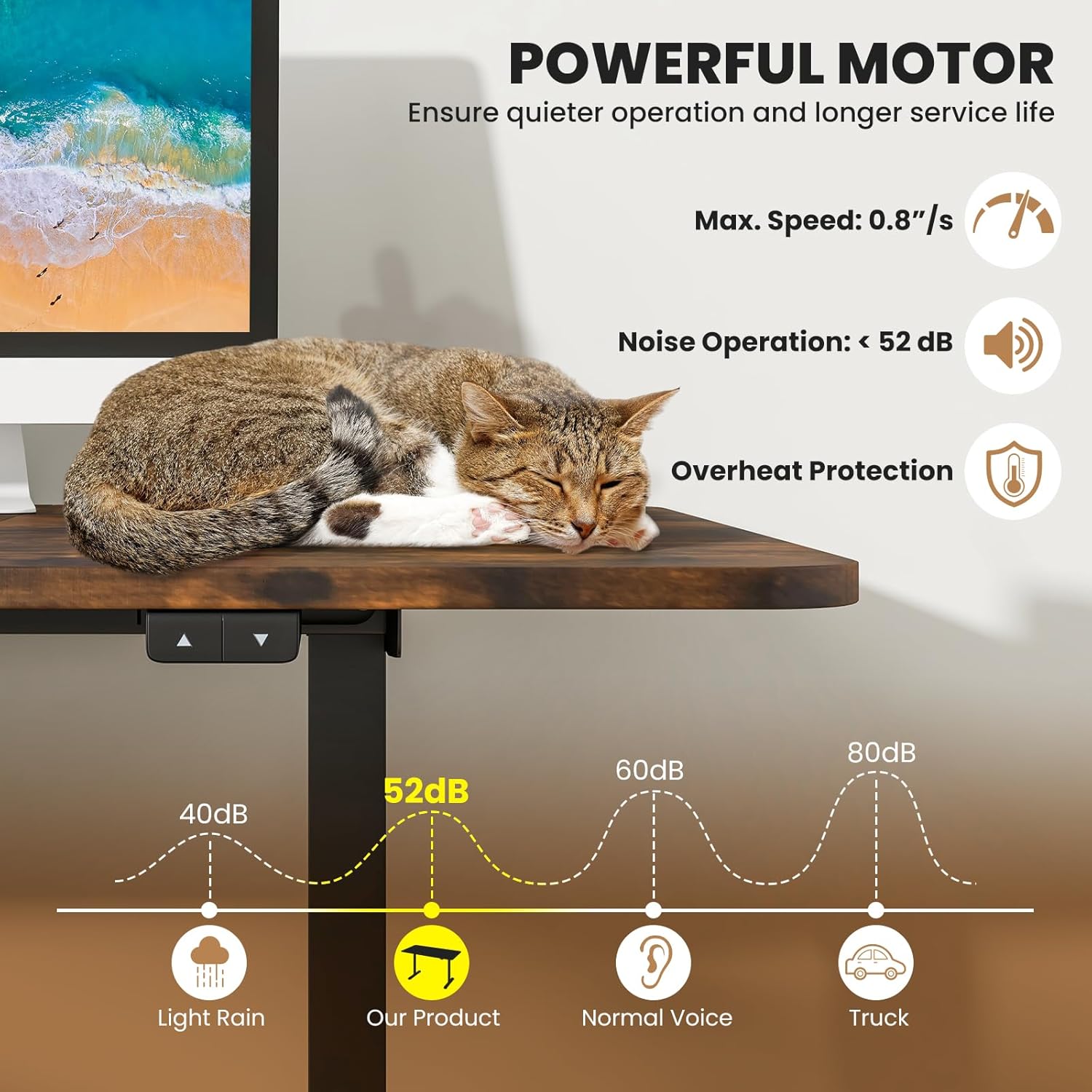 GOFLAME Height Adjustable Electric Standing Desk, 55 x 28 Inch Sit Stand Up Electric Desk with Metal Frame, Ergonomic Standing Workstation for Study, Office, Living Room, Brown