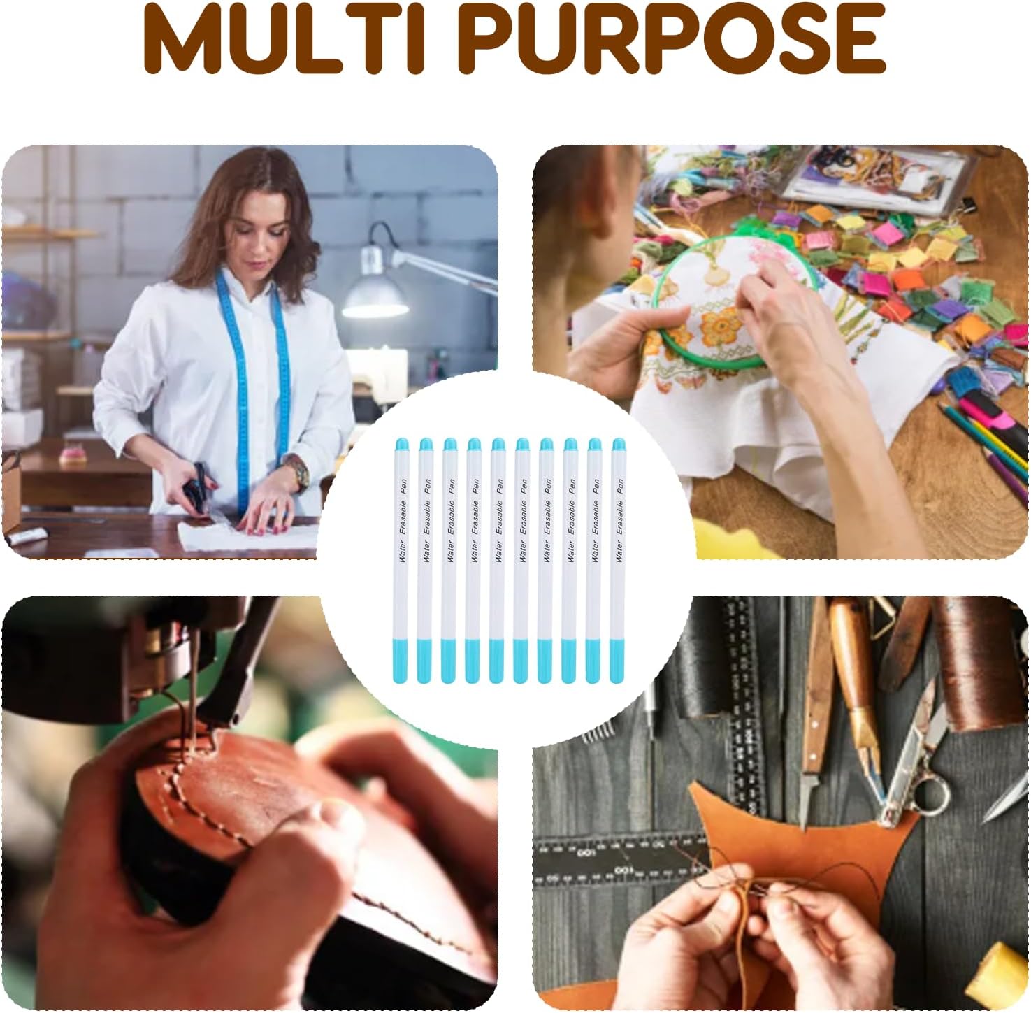 - PACK CONTENTS: Set of 10 blue water-erasable fabric marking pens with single head design for marking on fabrics