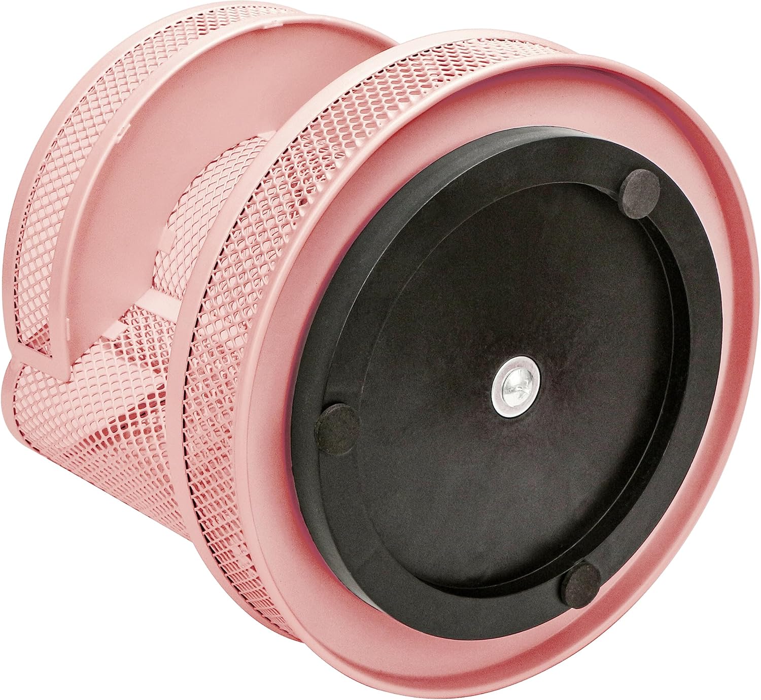 Annova Mesh Desk Organizer Rotate with 5 Compartments Round Spinning Tidy Candy/Pen Holder Desk Accessories Office, Art Supply, Storage, Classroom, Home (Light Pink)