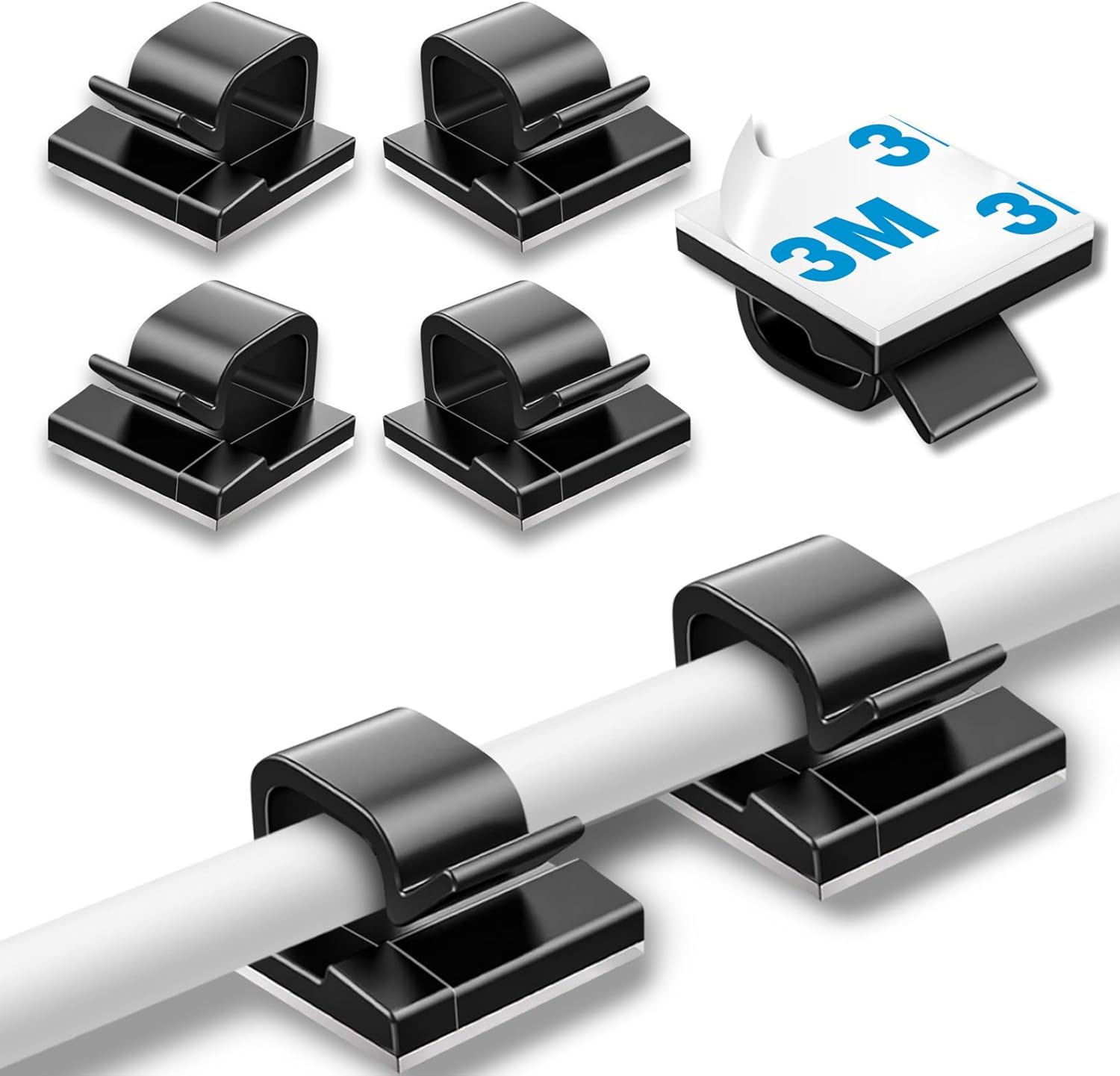 - Self-Adhesive Clips: Sticky cable holder clip with self adhesive pad can grip the surfaces stably which can be removed easily without damage to the desktop and with no residue leaving on the surfaces.