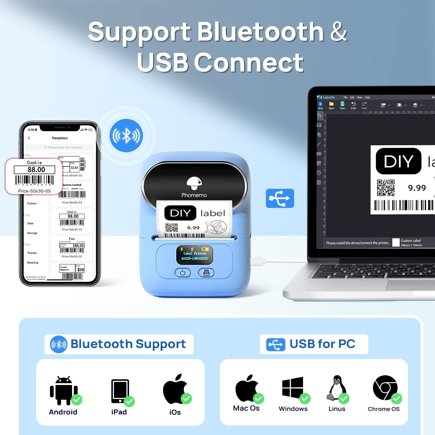 - Powerful APP Easy to Use- Phomemo M110 label maker machine works with our app โPrint masterโ. More than 100+ free label templates, 13 languages, can print text, barcode, Icon, picture, tabel ect. Freely edit your own labels. One click to batch printing, help your business more efficient