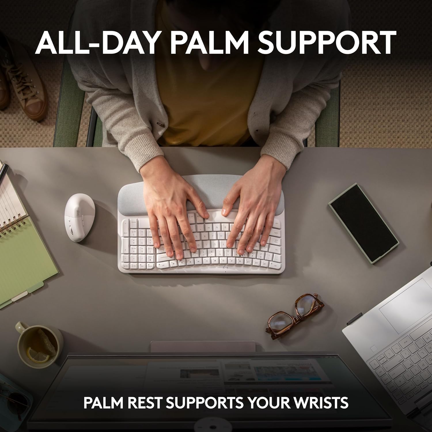 Logitech Wave Keys Wireless Ergonomic Keyboard with Cushioned Palm Rest, Comfortable Natural Typing, Easy-Switch, Bluetooth, Logi Bolt Receiver, for Multi-OS, Windows/Mac - Off White