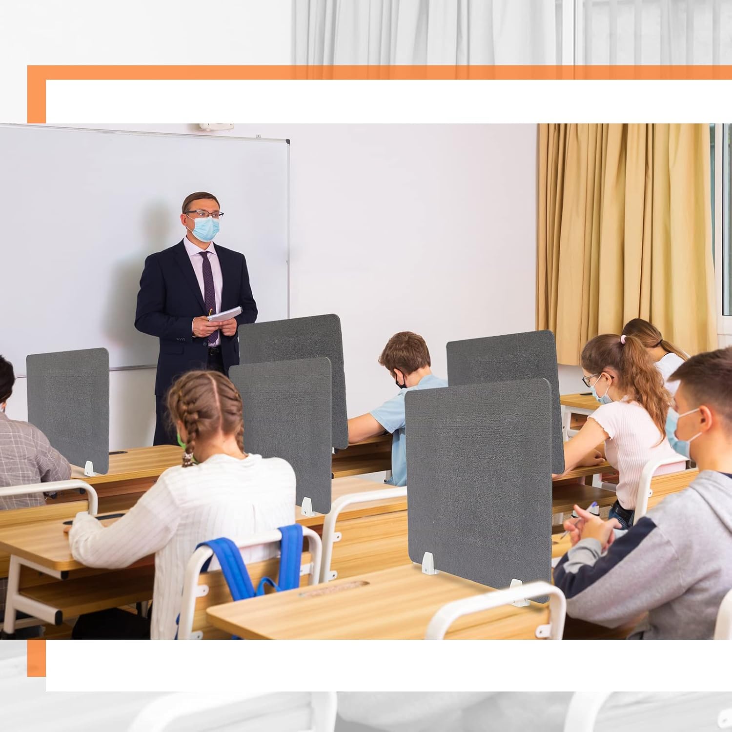 6 Pcs Desk Divider Privacy Panel 20 x 24 Clamp-on Acoustic Freestanding Desktop Partition Dividers with Aluminum Guard Clamps for Office Student Sound Proof Reducing Noise Visual Distractions(Gray)