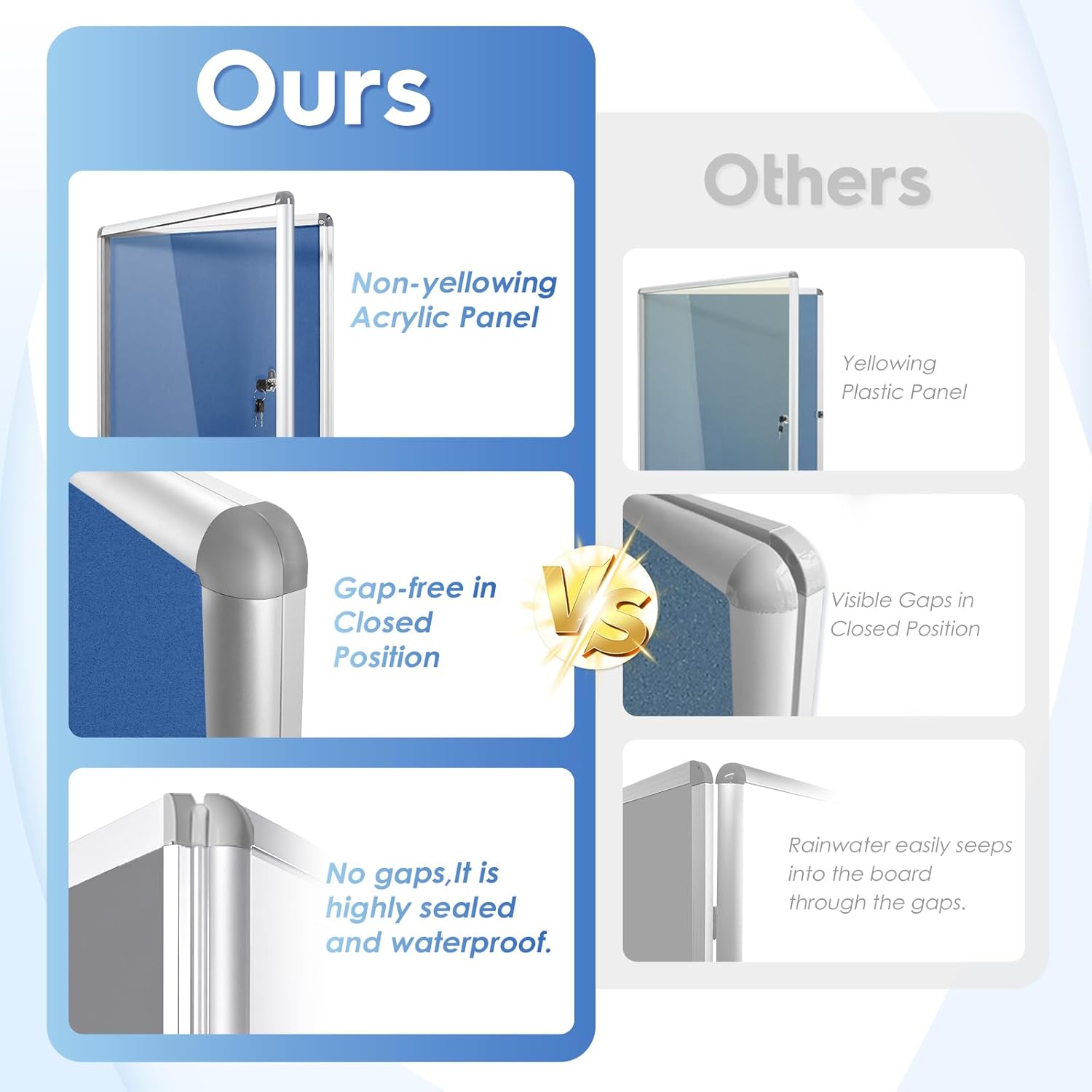 - Secure and Protected Display —Lockable acrylic doors and key mechanisms ensure that important information are kept safe from the elements, theft, or tampering.