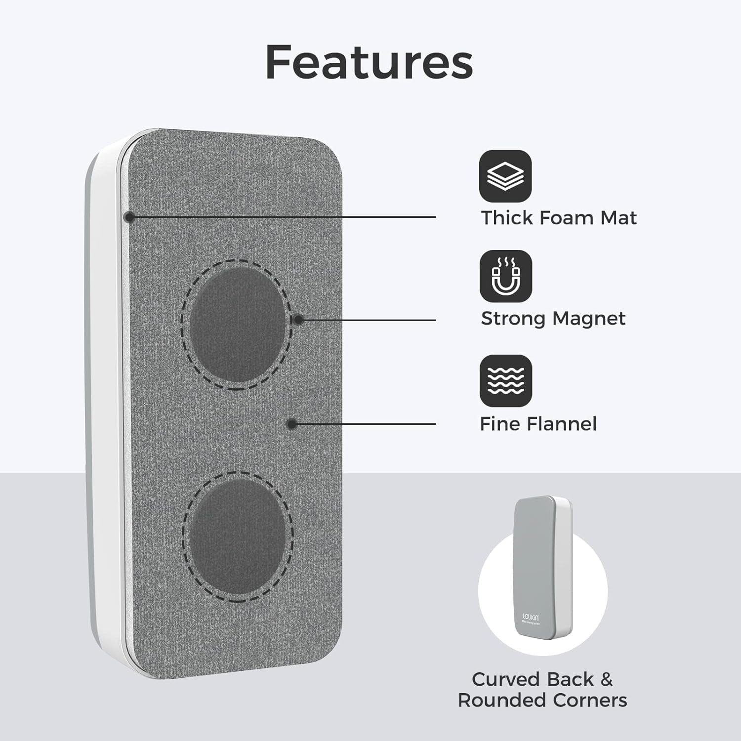 loukin 4 Pack Magnetic Dry Erase Eraser, Whiteboard Eraser, Glass Board Remover, 3.4 fl oz Whiteboard Cleaner * 2 Included, for Classroom, Home and Office Use (Gray*2, White*2)