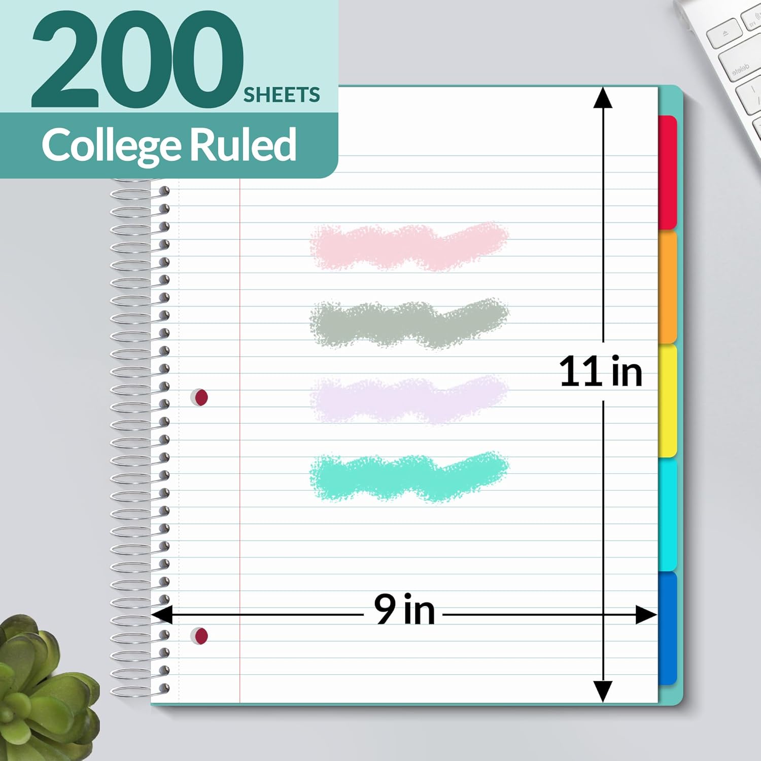 - CRAFTED IN DETAILS: Large overall note book size is 9.5" x 11". Inner paper size is 9" x 11". Thick PP front and back hardcover; Strong Spiral Binding keeps pages firmly together and won't bend or warp easily. Sturdy notebooks college ruled holds up well to frequent transfers in and out of backpacks, briefcases, and cars. Value for money college school supplies!