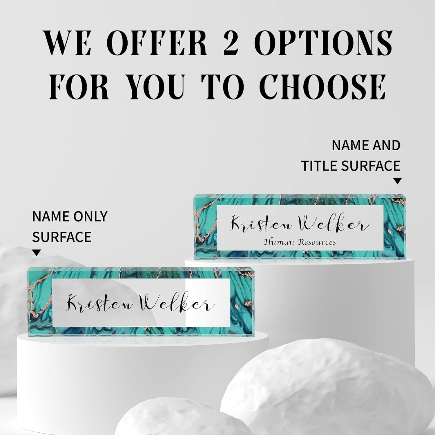 - HIGH QUALITY - The Personalized Name Sign Plates Are Made Of High Quality Crystal Clear Acrylic Blocks. This Office Nameplate Will Stand Out On Any Desk!We use high-tech UV printers to print on quality clear acrylics glass so you can visualise your memories.
