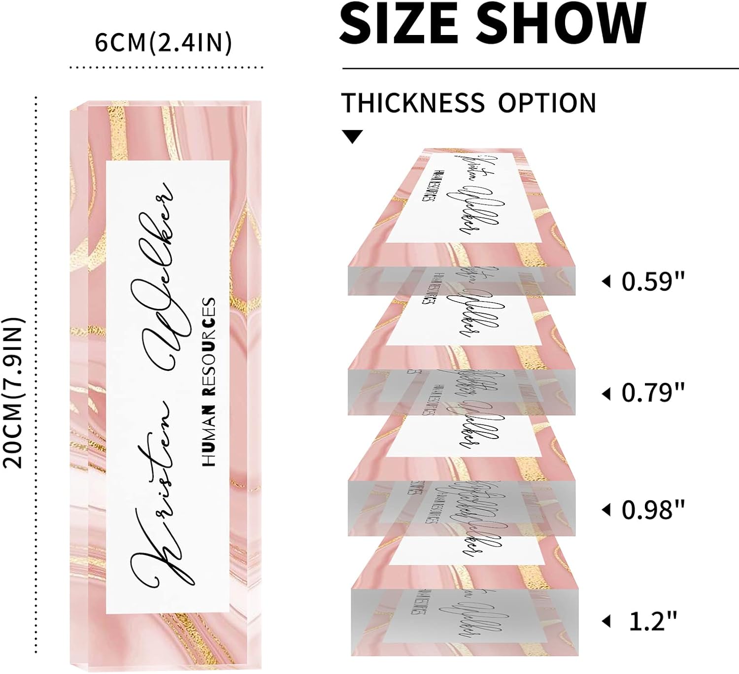 - DISPLAY YOUR NAME BEAUTIFULLY AND PROFESSIONALLY: It is made of high quality transparent acrylic, firm, crystal clear, colorful and flawless. The engraved words on the back are not easily scratched. The edges are smooth and won't hurt your hands.