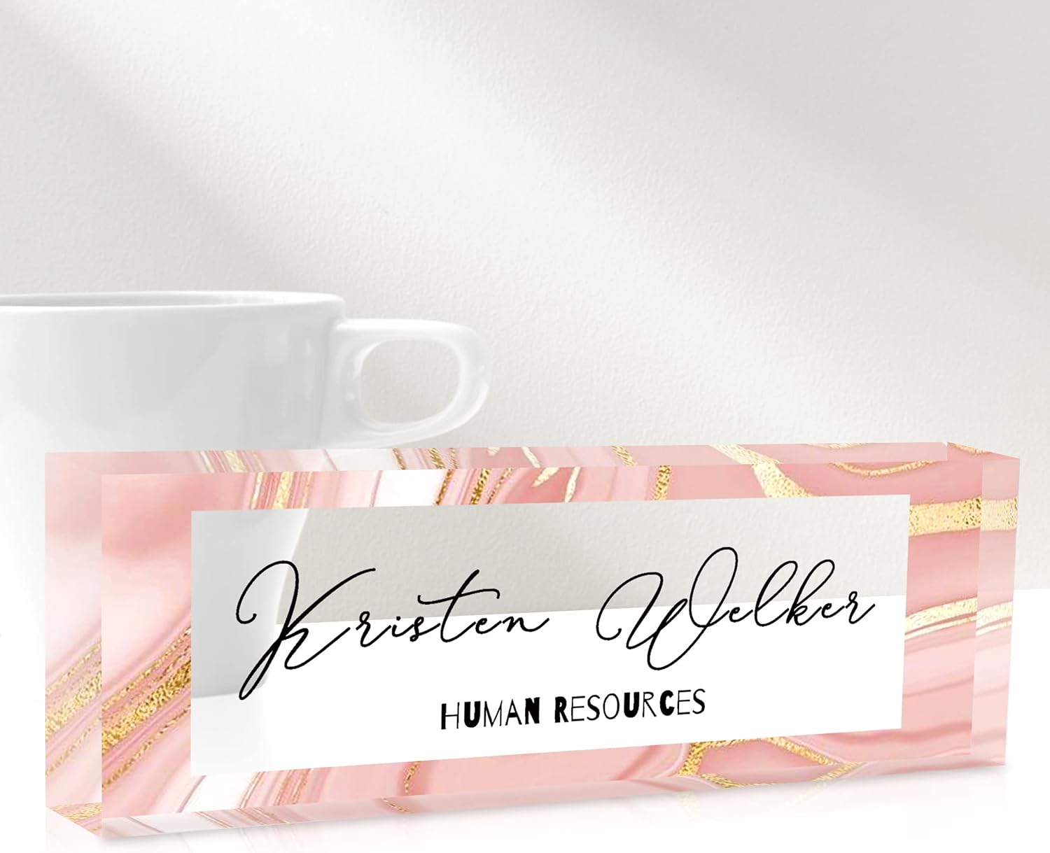 - HIGH QUALITY - The Personalized Name Sign Plates Are Made Of High Quality Crystal Clear Acrylic Blocks. This Office Nameplate Will Stand Out On Any Desk!We use high-tech UV printers to print on quality clear acrylics glass so you can visualise your memories.