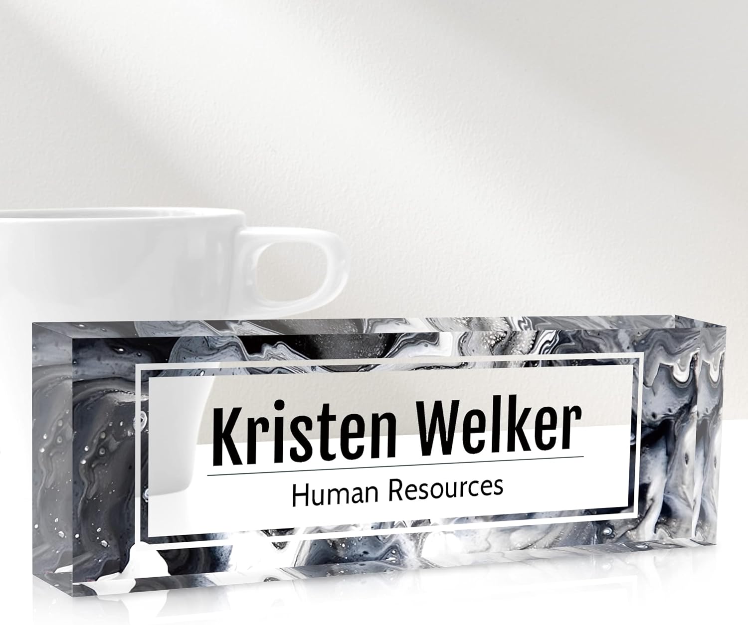 - HIGH QUALITY - The Personalized Name Sign Plates Are Made Of High Quality Crystal Clear Acrylic Blocks. This Office Nameplate Will Stand Out On Any Desk!We use high-tech UV printers to print on quality clear acrylics glass so you can visualise your memories.