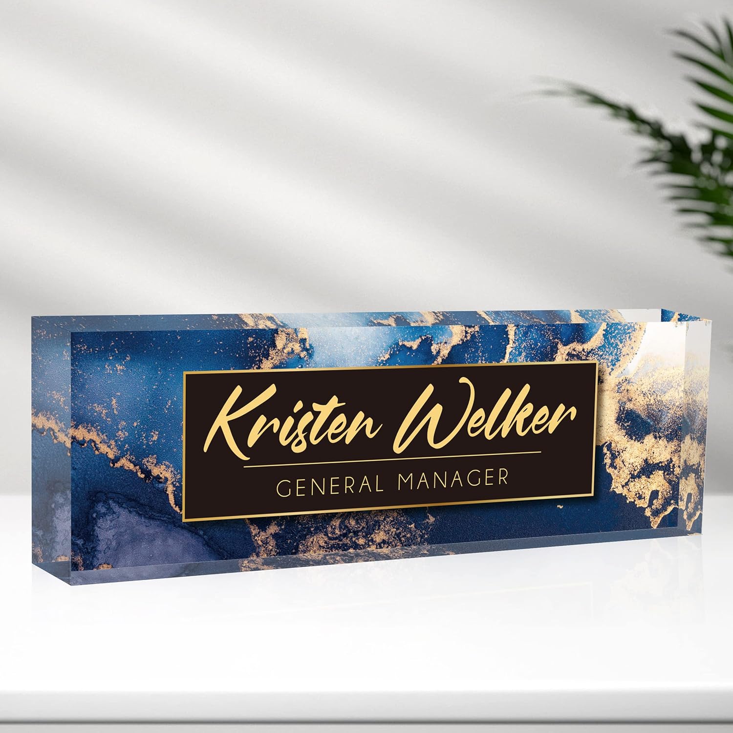 Desk Name Plate Personalized, Premium Blue Marble Acrylic Desk Name Plate, Personalized Name Plate for Desk, Office Decor for Women or Men Coworkers, Boss, Employee, Teacher