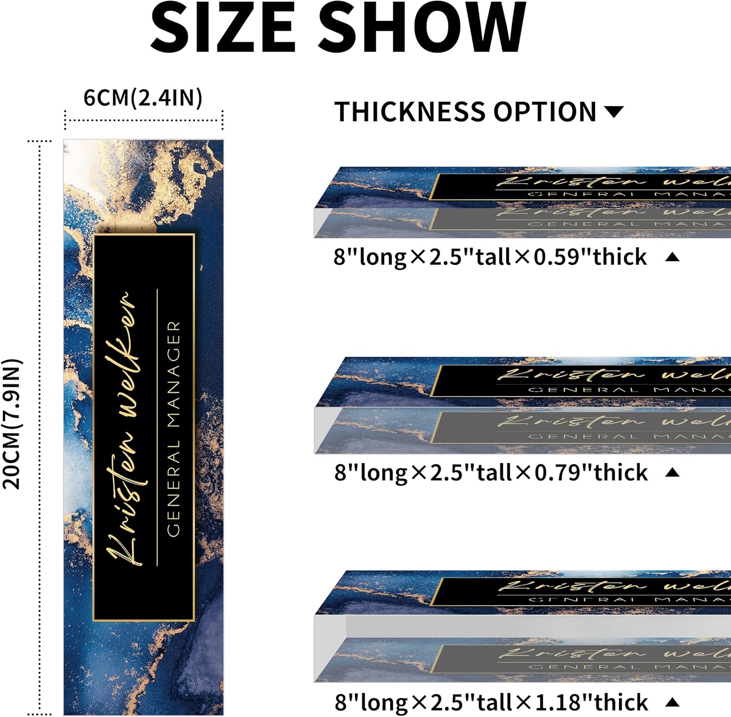 - 🎁Premium Quality: The personalized name sign plates are made of high quality crystal clear acrylic blocks. This office nameplate will stand out on any desk! We use high-tech uv printers to print on quality clear acrylics glass so you can visualise your memories.