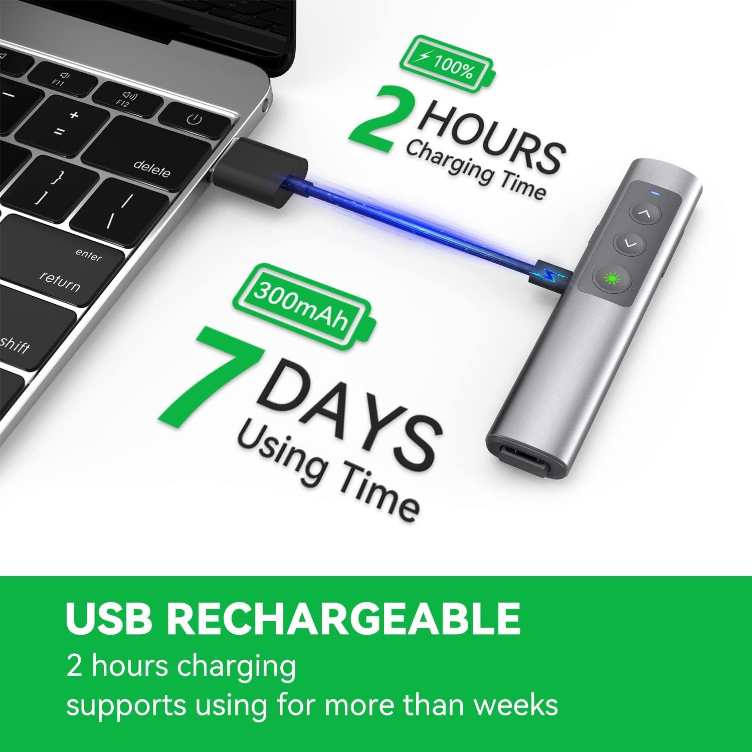 - Special Feature : 100ft Remote Control Range, 2 in 1 USB C Receiver, Bright Green Laser, Metallic Body, Multi-OS Compatible, Plug-and-Play, Rechargeable 100ft Remote Control Range, 2 in 1 USB C Receiver, Bright Green Laser, Metallic Body, Multi-OS Compatible, Plug-and-Play, Rechargeable
