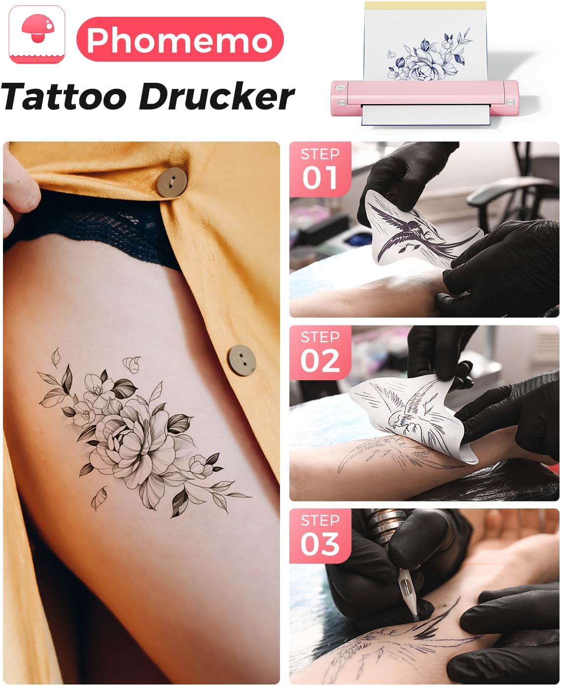 - Powerful Phomemo App : Say goodbye to complicated printing processes - our Phomemo App allows for one-click printing of images and documents. Unlike traditional tattoo printer machine that require printing on white paper before copying, you can print your designs instantly with our app. Plus, for optimal printing results, we recommend using Phomemo Tattoo Transfer Paper.Alternatively, connect to your PC/Laptop via USB cable and print directly. (PC/Laptop printing download the driver: m08f.phomemo.com)