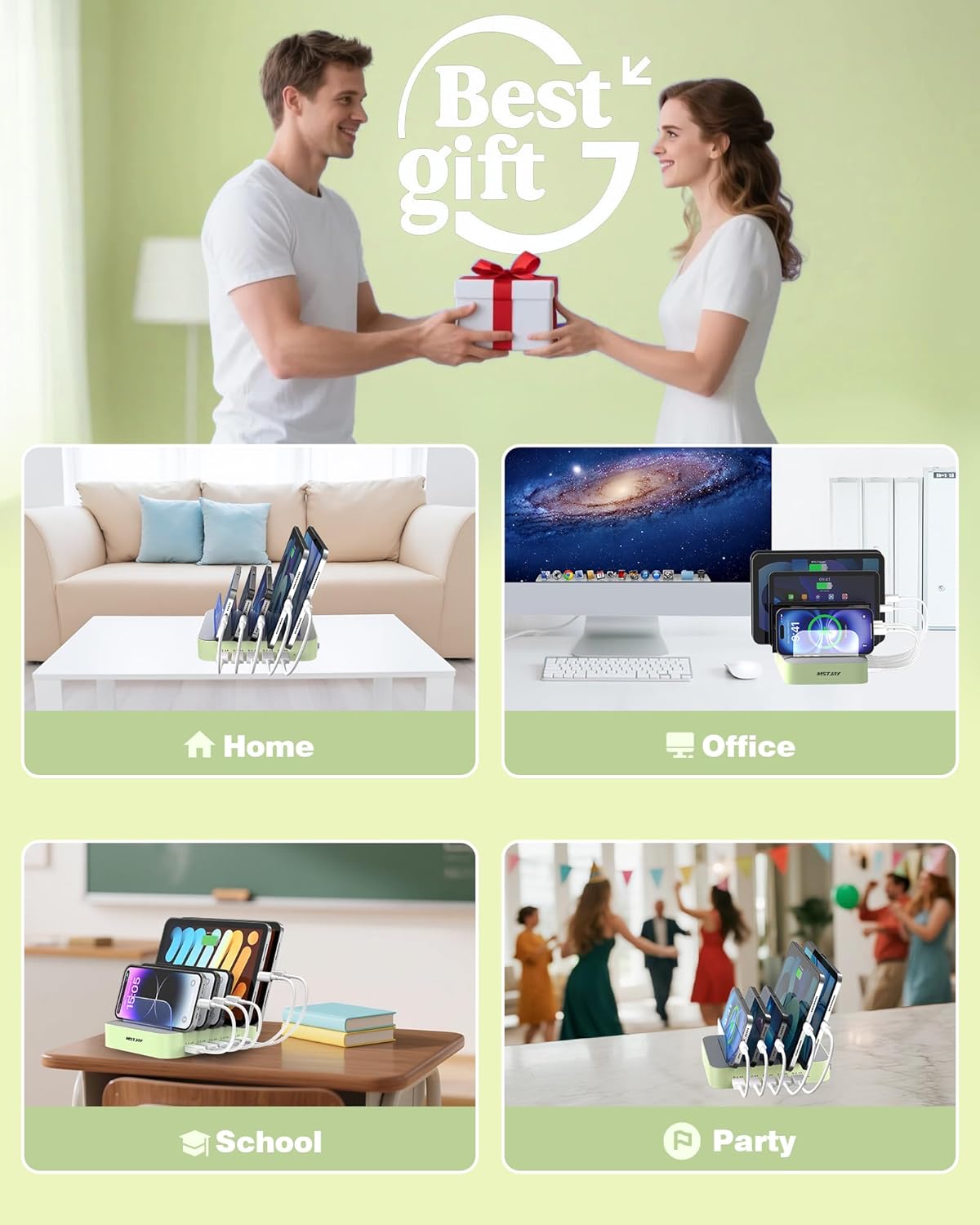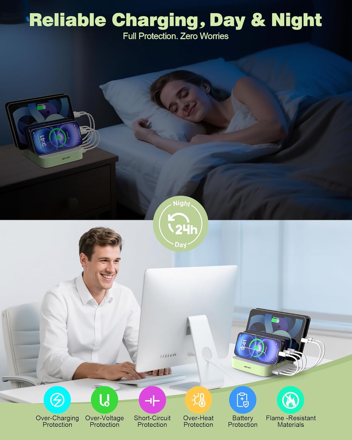 - 【Fast and Smart】This charging station for multiple devices will charge your smartphones, and tablets up to 80% than other USB-A charger stations with 2.0A or less. Our multi port charging stations will automatically detect your devices and adjust voltage for minimal charging time.