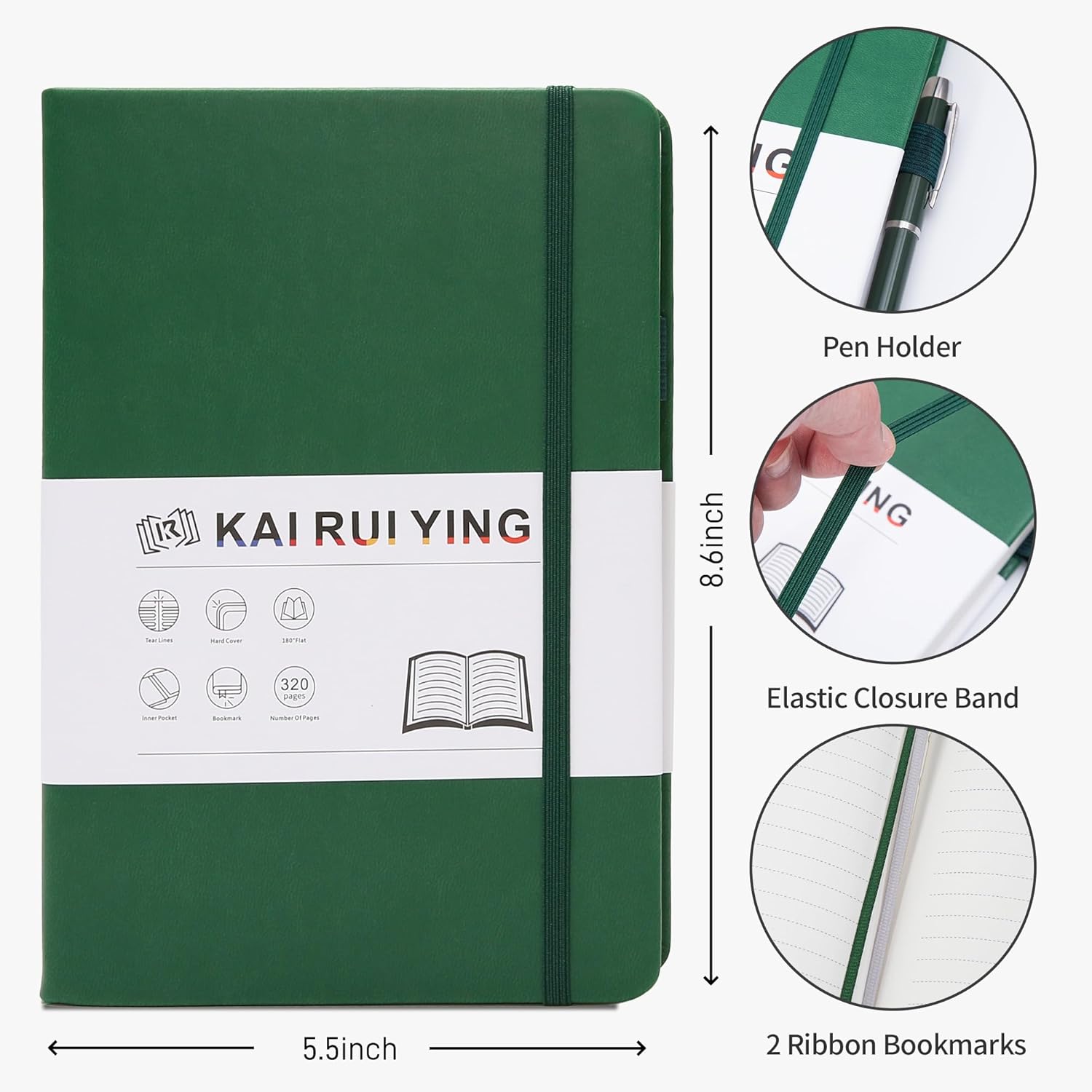 - 🌈【Multifunctional Accessories】⭐This classic 5.6" x 8" vegan leather journal features a durable and water-resistant cover, 320 college ruled lined pages, inner expandable pocket, pen holder, ribbon bookmark & elastic closure band