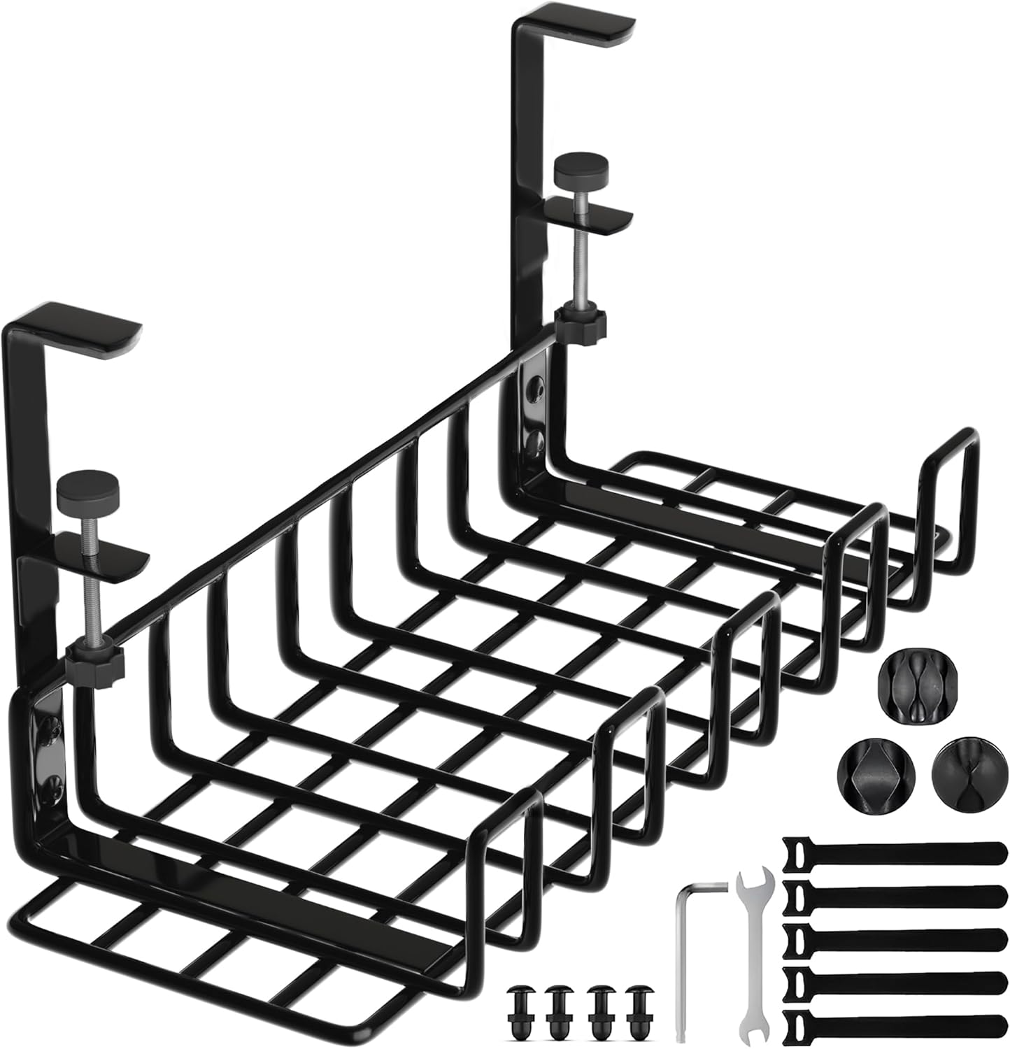 - 【Sturdy & Spacious】- Cable management tray under desk is made of powder carbon coated steel. Unlike flimsy under desk cable trays, our wire management under desk features thick 4mm steel wires, 20lbs exceptional load-bearing capacity, adjustable knob range: 0.4”-2.37” & an ideal size of 16L x 6W x 7.5H inches.