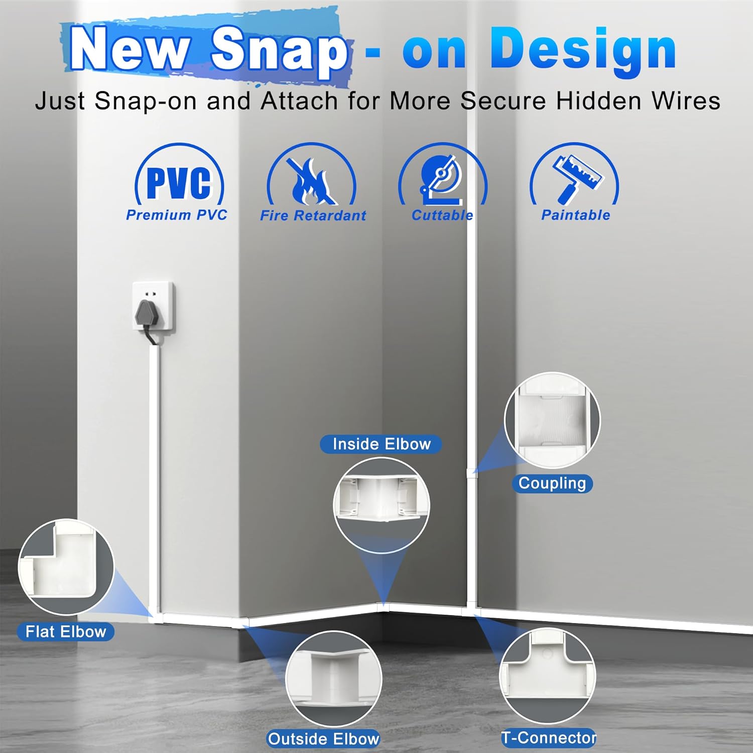 - Simple to install: Peel off the self-adhesive backing and conceal cords in the wall 25 individual wire channels, enough length to meet your needs. It has a smooth cutting surface, and can be easily installed without accessories for a seamless connection. You can also use the accessories as connections and extend your installation range to hide corners or cable nooks.