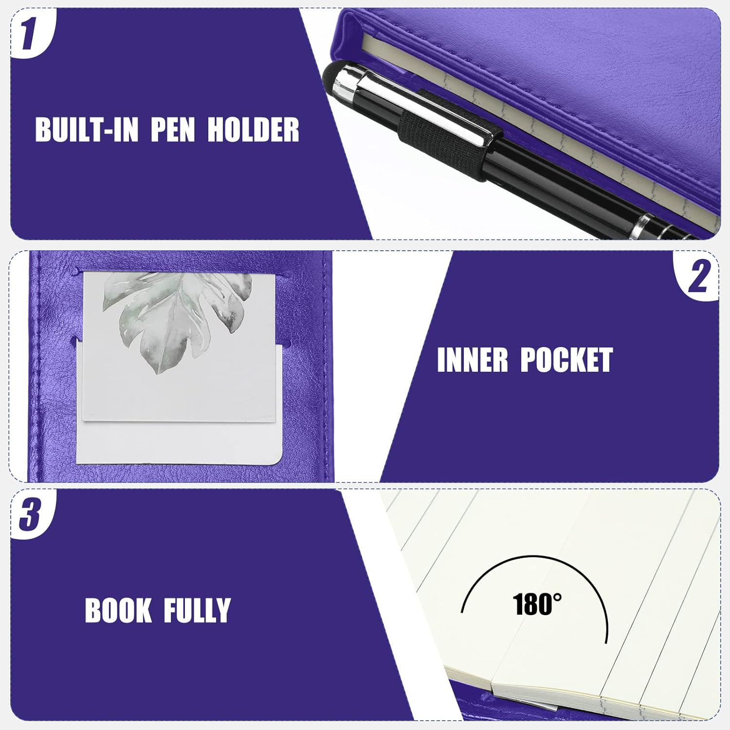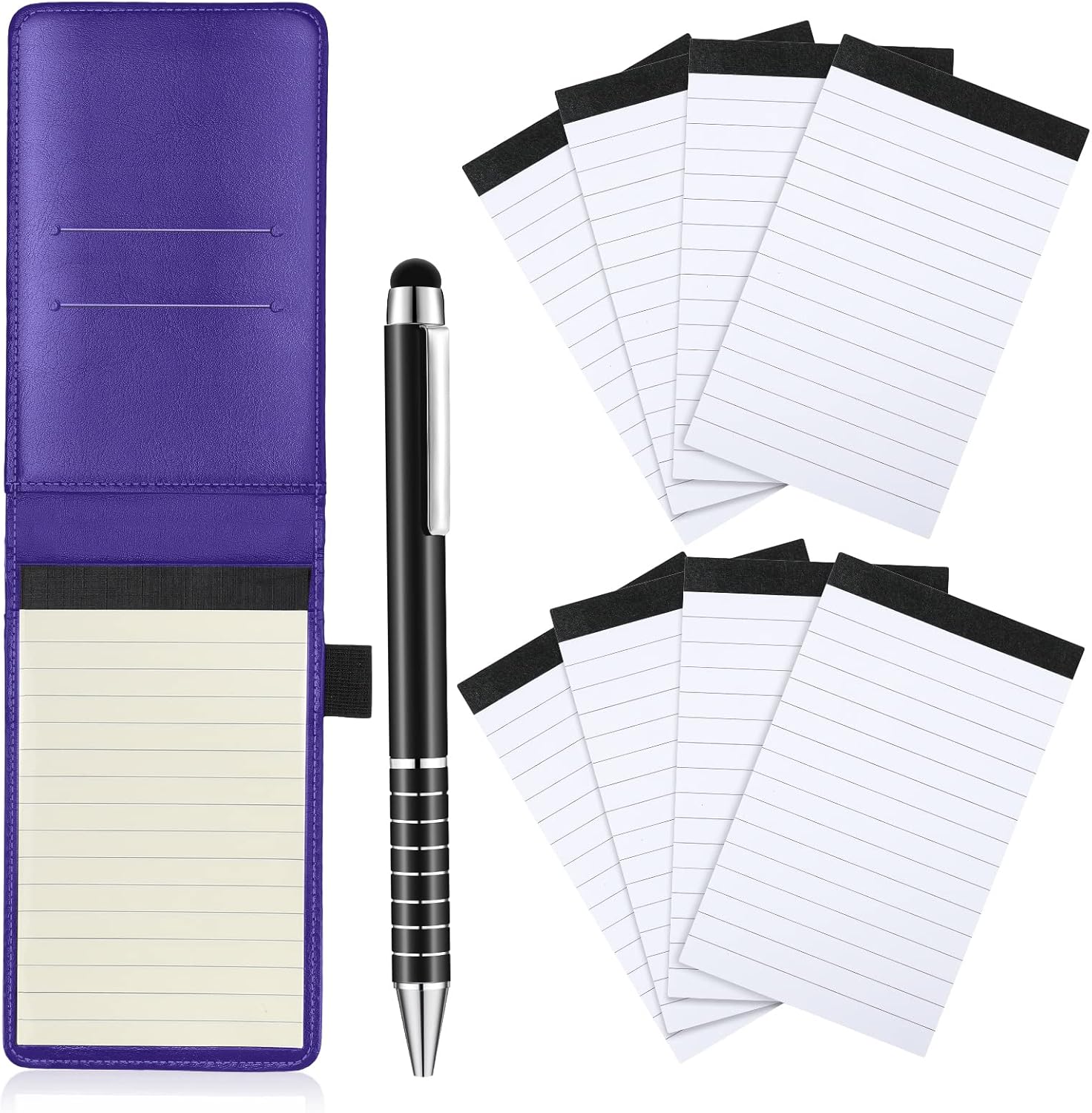 Outus 10 Pcs Pocket Notebook with Pen Set Included Mini Pocket Notepad Holder with 50 Lined Sheets, Metal Pen, 8 Pcs 3 x 5 Inch Memo Book Refills, 30 Lined Paper Per Note Pad (Purple)