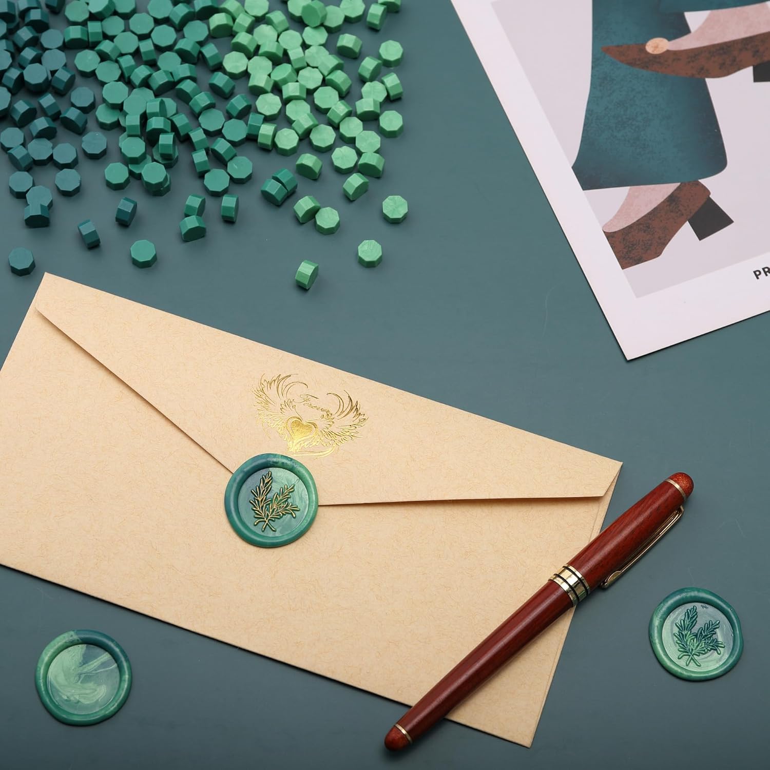 Yoption 300Pcs Green Mix Sealing Wax Beads for Wax Seal Stamps, Wedding Invitations, Christmas Cards, Wine Packaging, Envelopes, Gift Wrap