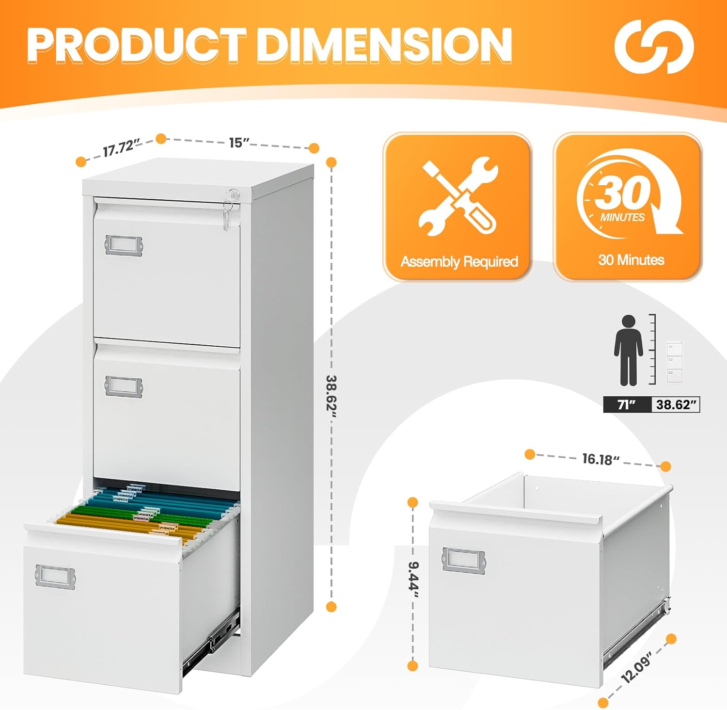 - ASSEMBLY REQUIRED:✔✔The 3 drawer file cabinet needs to be assembled by yourself, comes with all hardware and necessary tools, and easy-to-follow instructions. If this locking file cabinet arrives damaged, scratched, or missing part, or any Installation problems, please feel free to contact us.