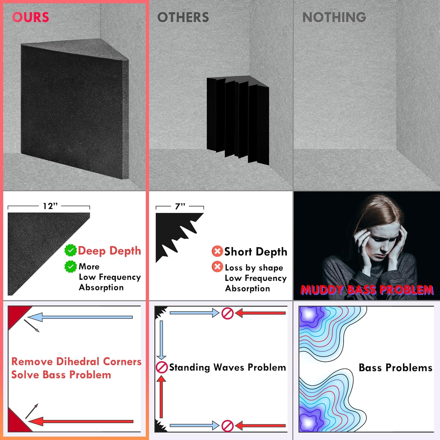 2 Pack Delta Bass Traps for Wall Corners, 16.5"x15.8"x12" Acoustic Foam for Sound Absorption, Super Chunk Bass Traps for Home Studio and Room Acoustic Treatment