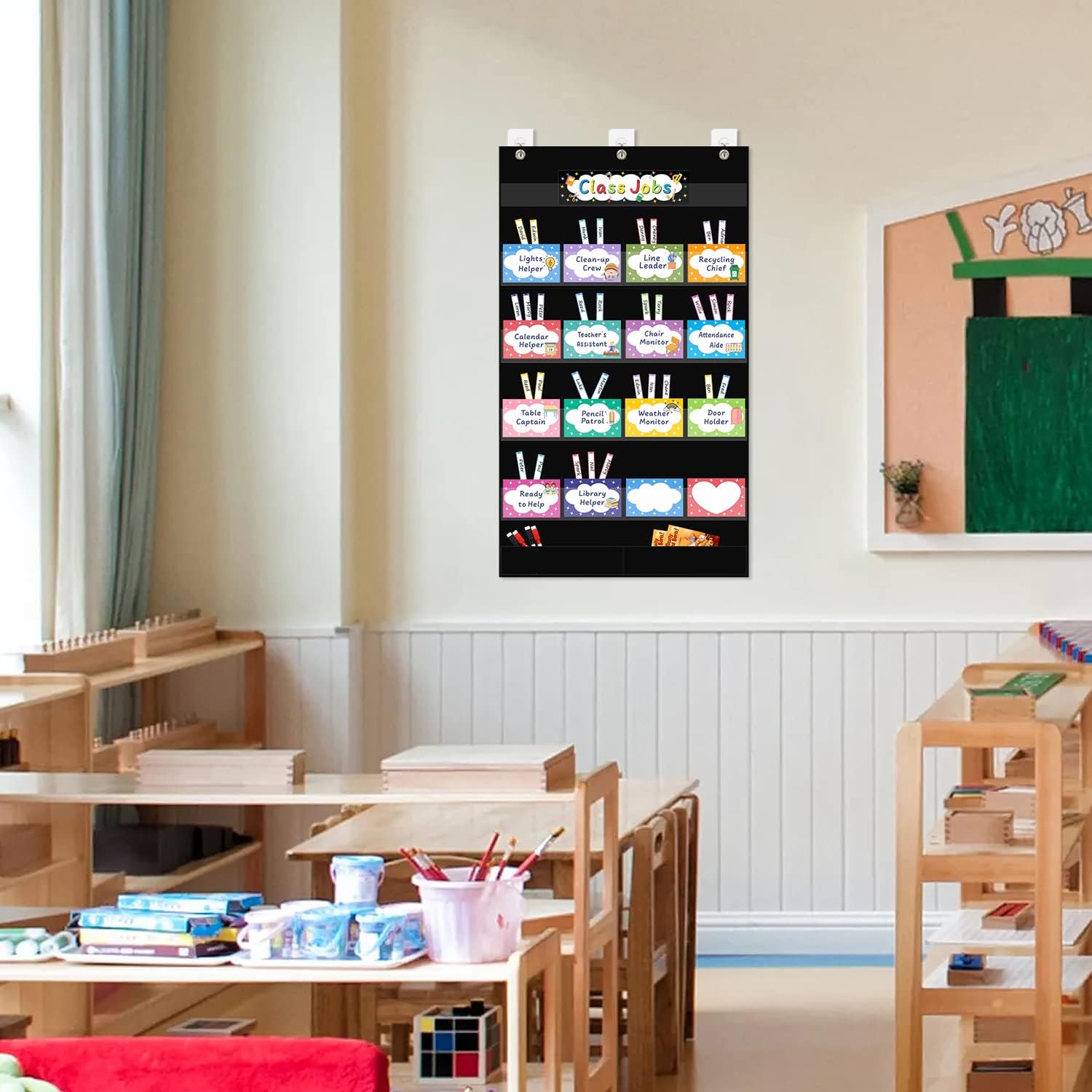 - ※【Easy to Use】 There are 3 free sticky hooks for this class job pocket chart, easy to hang on the wall or door to save class space and customize their own jobs. You don't worry about how to hang it.