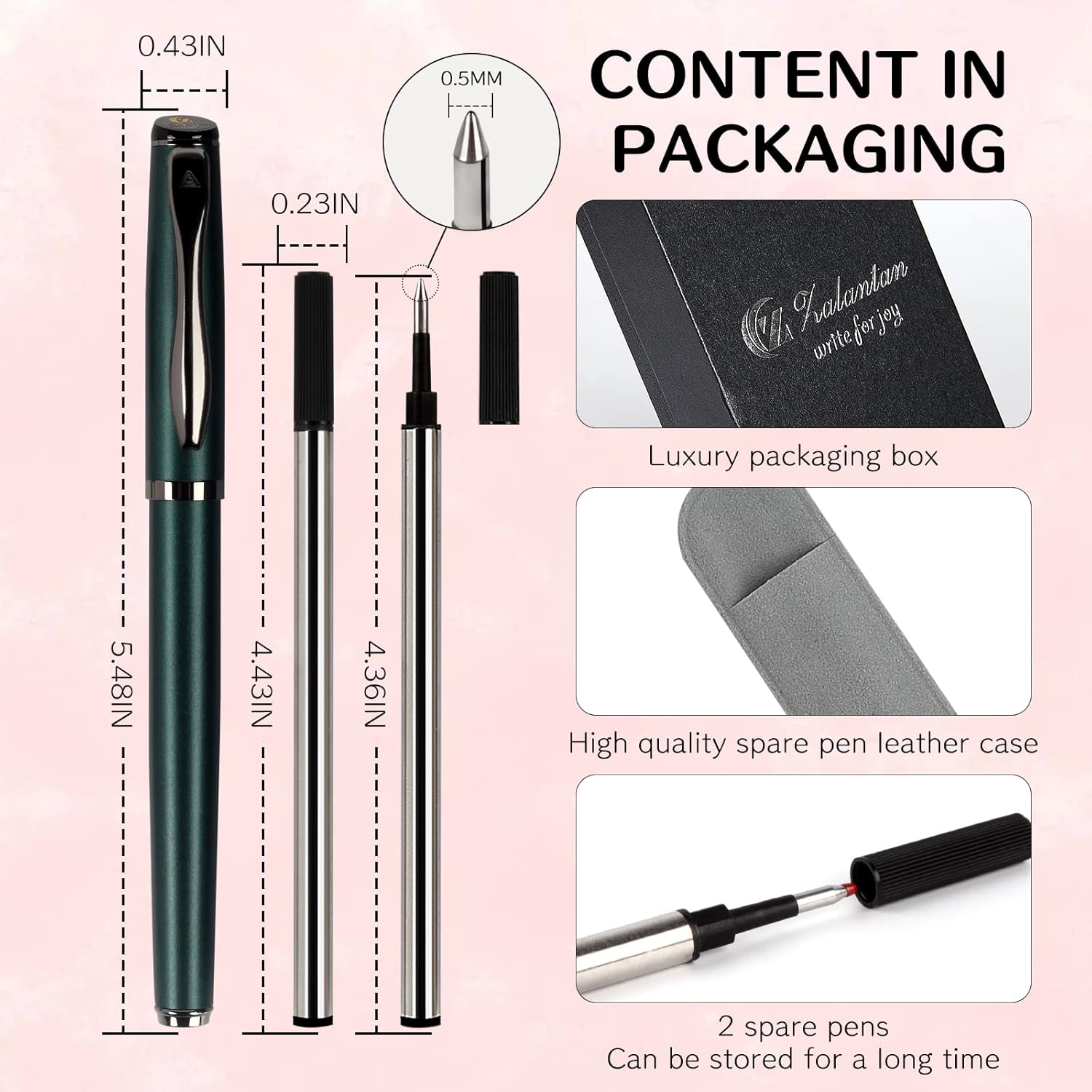 - Exquisite craftsmanship:The production process of Zalantan writing tool is rigorous.They are assembled by hand and the manufacturing details and function of each pen are carefully examined.This ensures the quality and reliablity of the Zalantan writing tool.