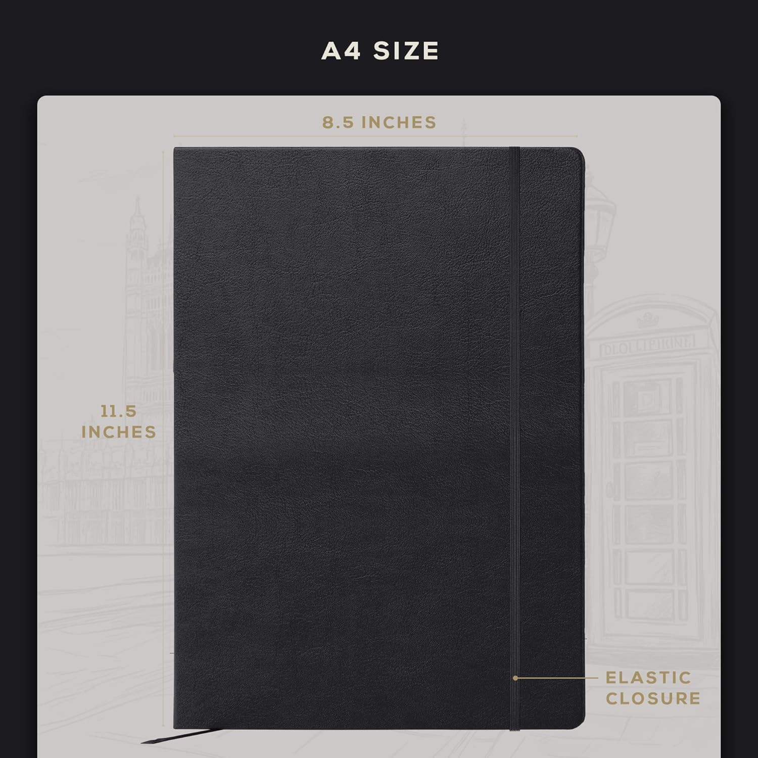 - Elegant & Durable Construction - Built to last with a robust vegan leather hardcover and thread-binding, this A4 large sketchbook combines timeless British-inspired design with lasting reliability for your artistic vision.