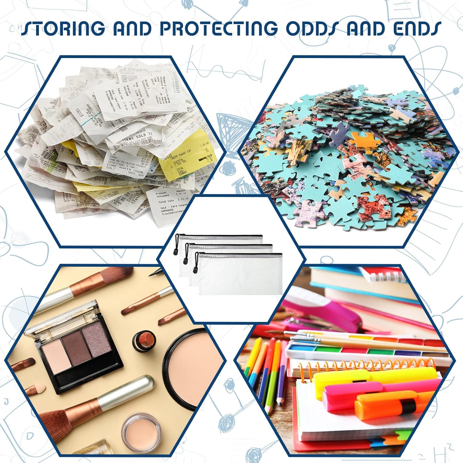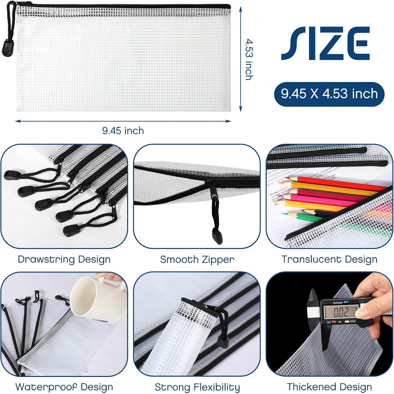- Translucent Pouches: the pencil pouches are semi transparent, finding items easy without opening your zipper pouch, suitable for store pencil, marker, pen, pencil sharpener, glue stick, fluorescent pen, cosmetics, bills, receipts, puzzles and so on, bringing much convenience to you