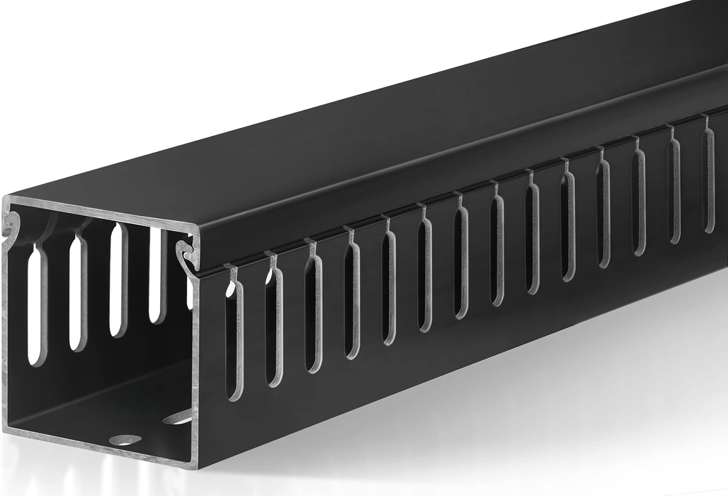- Easily Manage Your Network and Data Cables: Designed with parallel openings on both sidewalls, making it convenient for you to assemble and wire. Its H2 in x W2 in large capacity can accommodate up to 40 cables (depending on their thickness). This cable raceways kit brings two 39in long cable management raceway (Total 78in), reduce the hassle of splicing